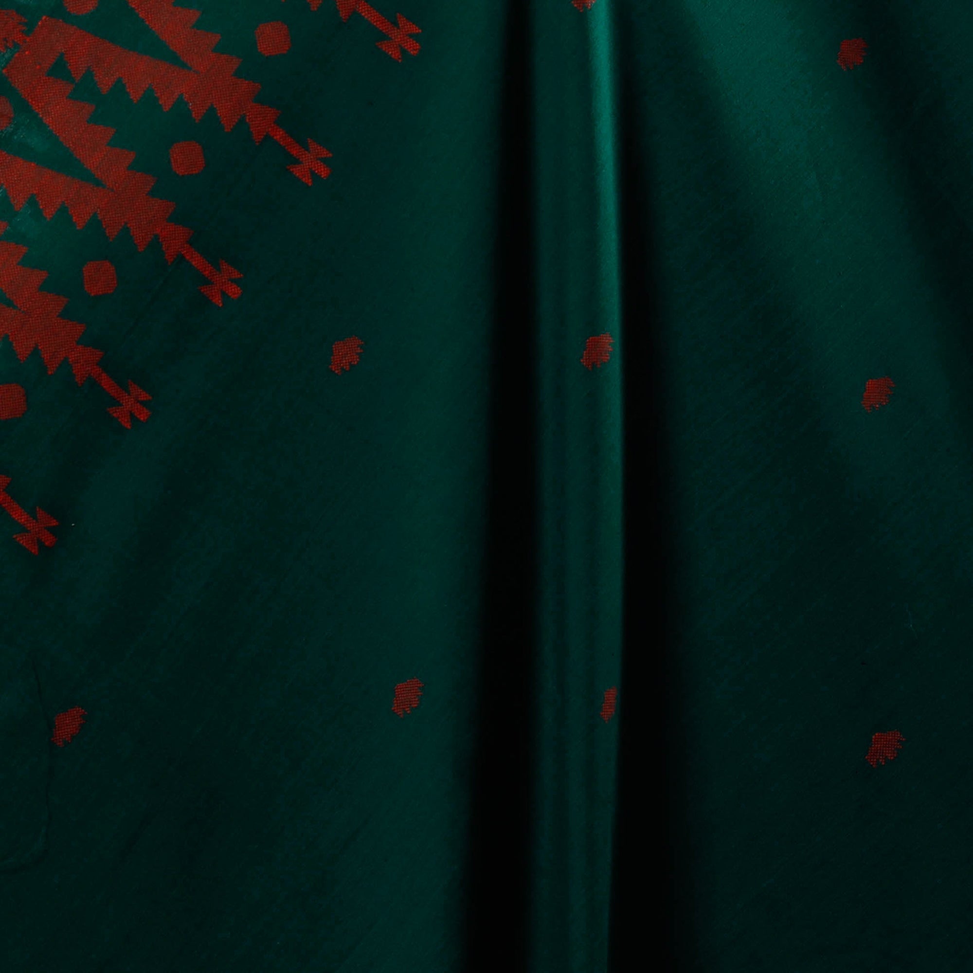 Originating from the skilled weavers of Tamil Nadu, this green jacquard cotton fabric beautifully merges traditional motifs with contemporary weaving. The prewashed texture offers a smooth, easy drape, ideal for crafting graceful kurtas, dresses, or home decor pieces.