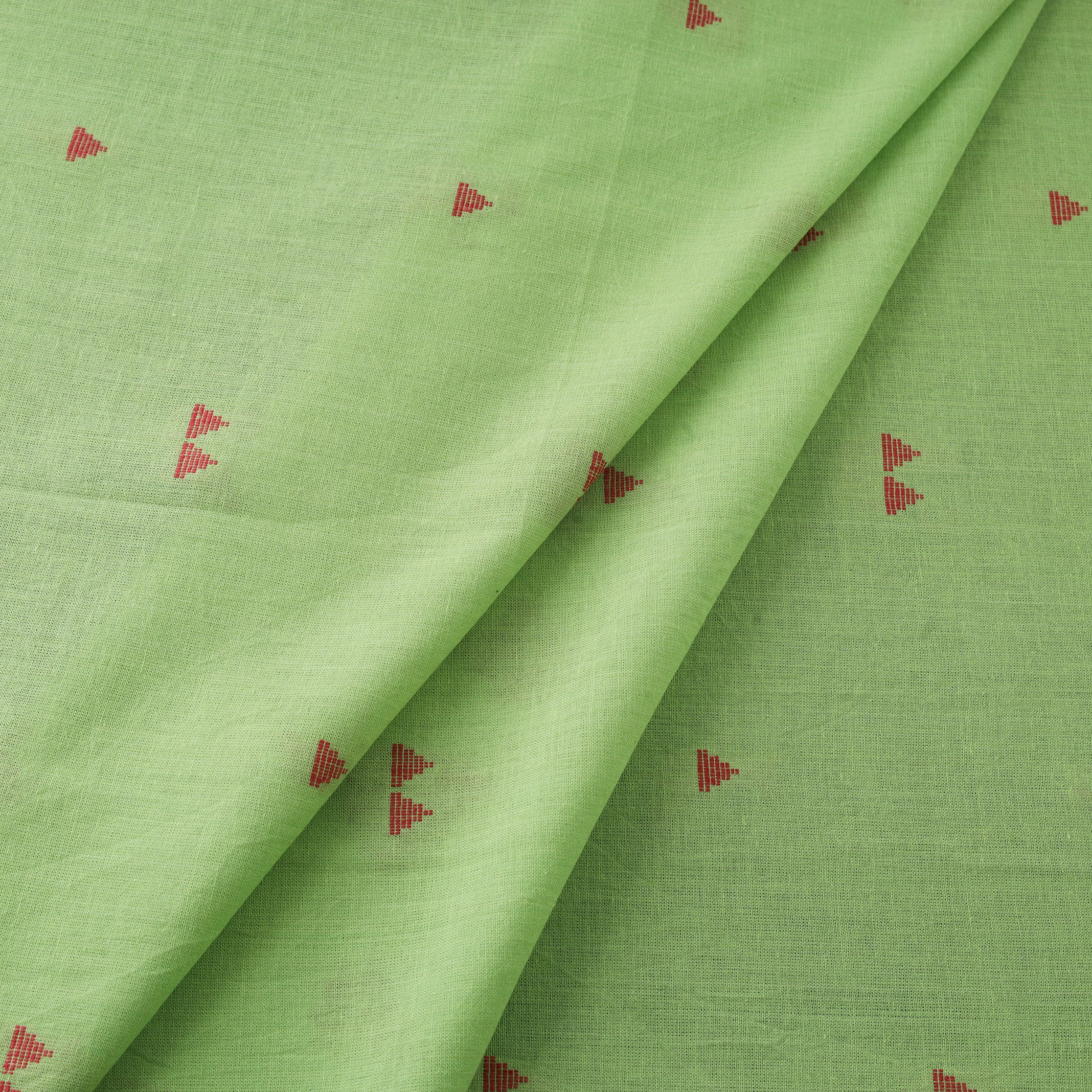 Woven in Telangana, this green jacquard cotton fabric showcases a traditional-inspired pattern through a modern weaving technique. Its prewashed texture adds softness, making it ideal for crafting kurtas, dresses, or home décor accents. While machine-made, it carries the essence of India’s rich textile heritage.