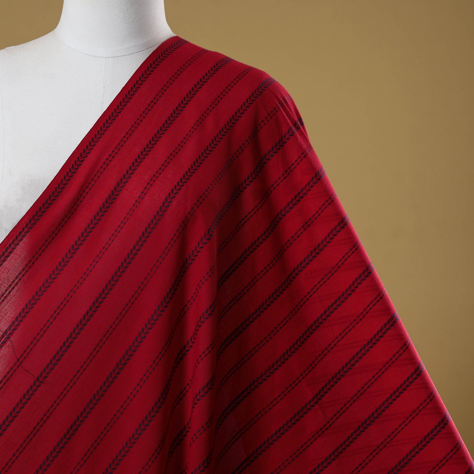 Red jacquard cotton fabric combines traditional designs with modern weaving. Its prewashed texture gives a smooth feel and easy drape, making it perfect for kurtas, dresses or home decor items. Though machine-woven, it still reflects the beauty of India’s rich textile heritage.