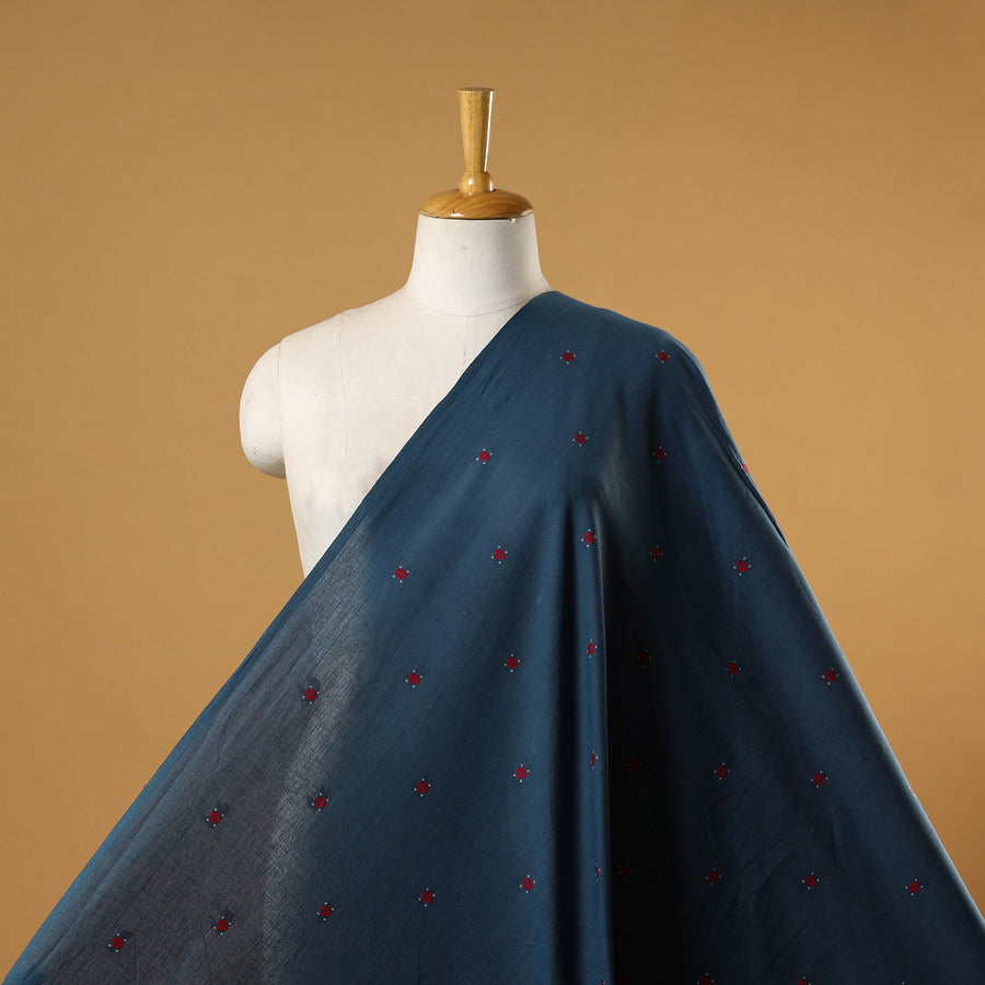 Originating from the skilled weavers of Tamil Nadu, this blue jacquard cotton fabric beautifully merges traditional motifs with contemporary weaving. The prewashed texture offers a smooth, easy drape, ideal for crafting graceful kurtas, dresses, or home decor pieces.