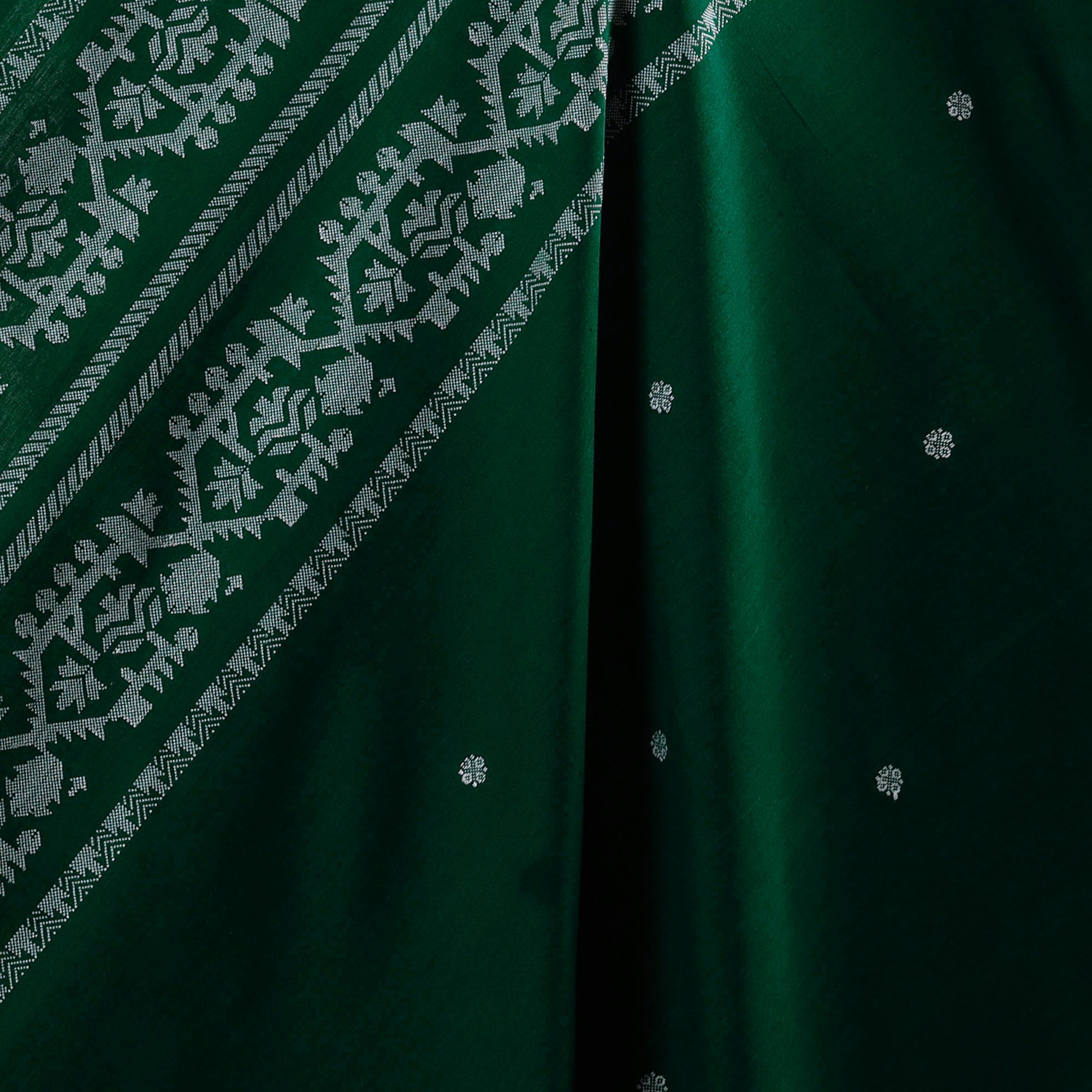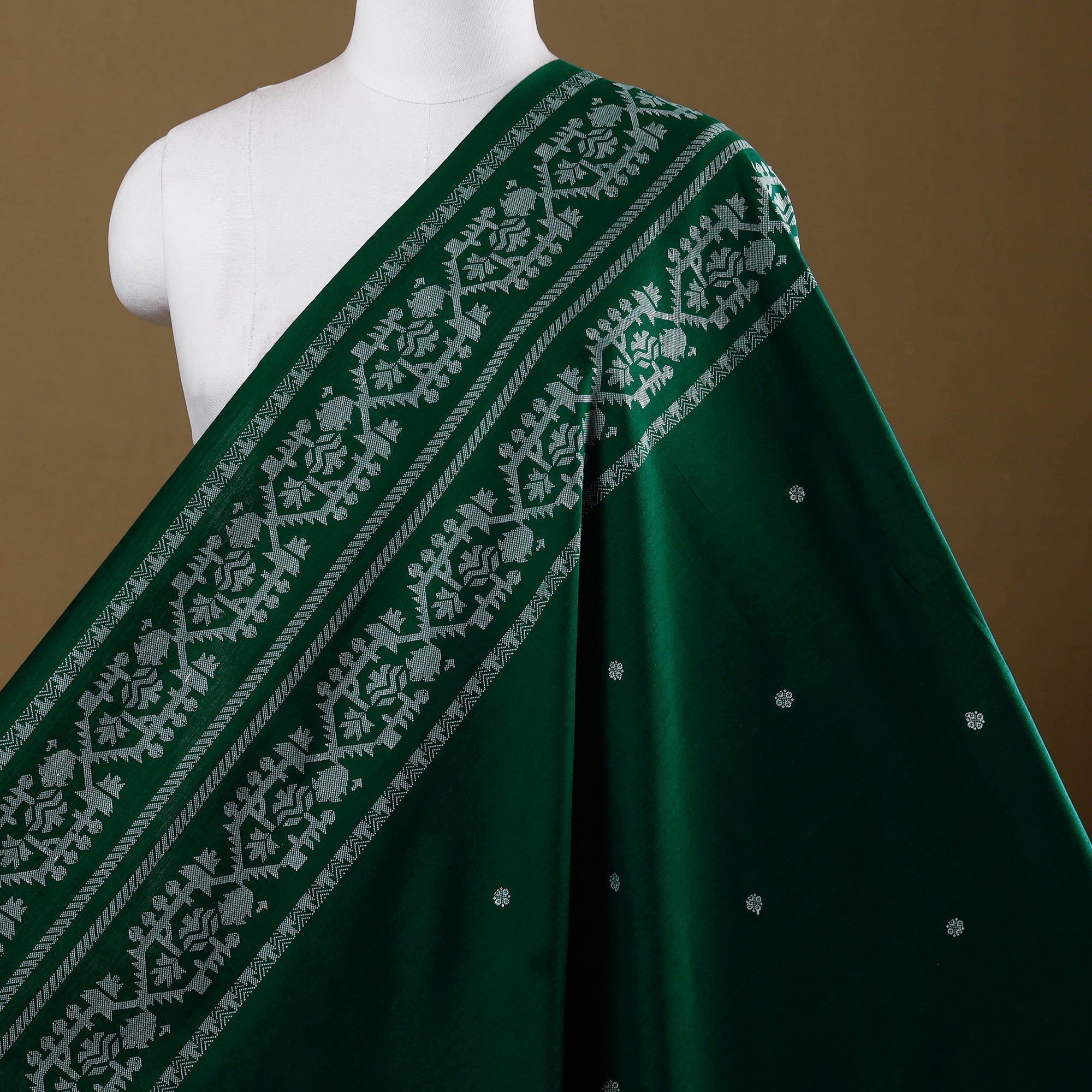 Originating from the skilled weavers of Tamil Nadu, this green jacquard cotton fabric beautifully merges traditional motifs with contemporary weaving. The prewashed texture offers a smooth, easy drape, ideal for crafting graceful kurtas, dresses, or home decor pieces.