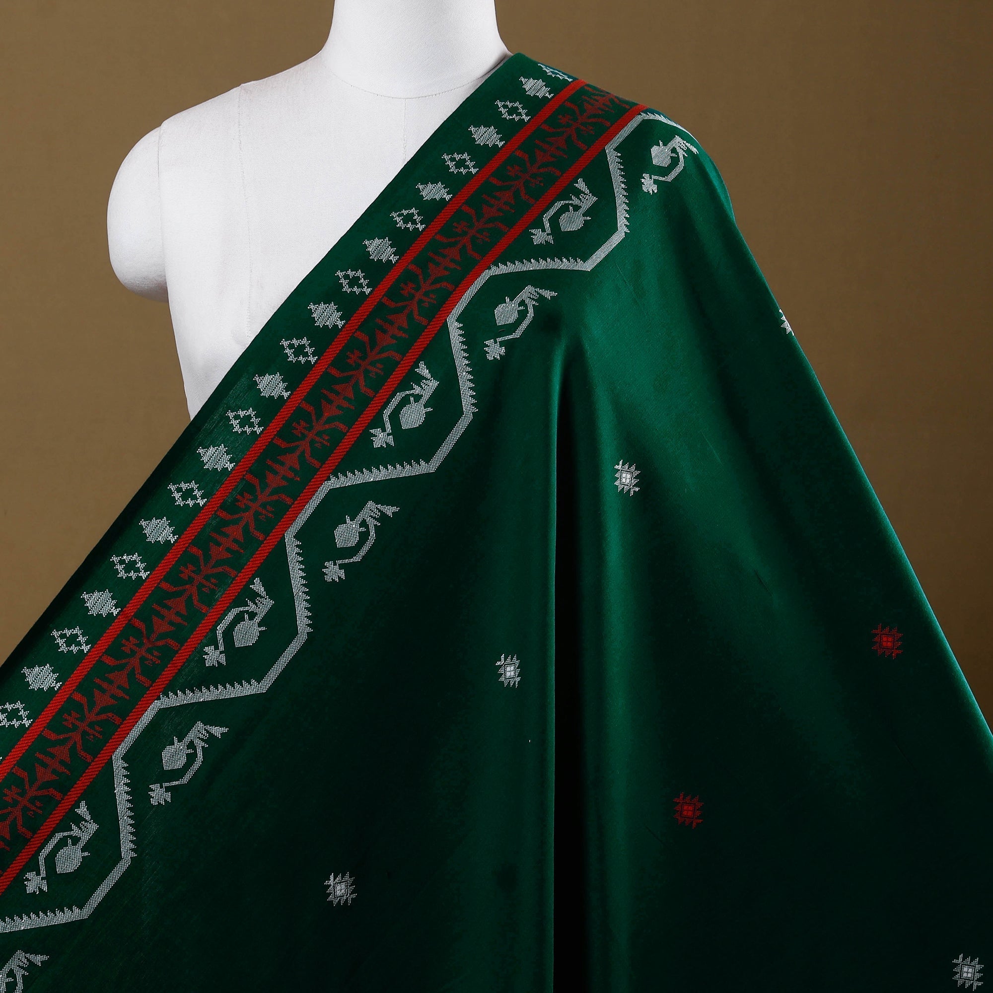 Originating from the skilled weavers of Tamil Nadu, this green jacquard cotton fabric beautifully merges traditional motifs with contemporary weaving. The prewashed texture offers a smooth, easy drape, ideal for crafting graceful kurtas, dresses, or home decor pieces.