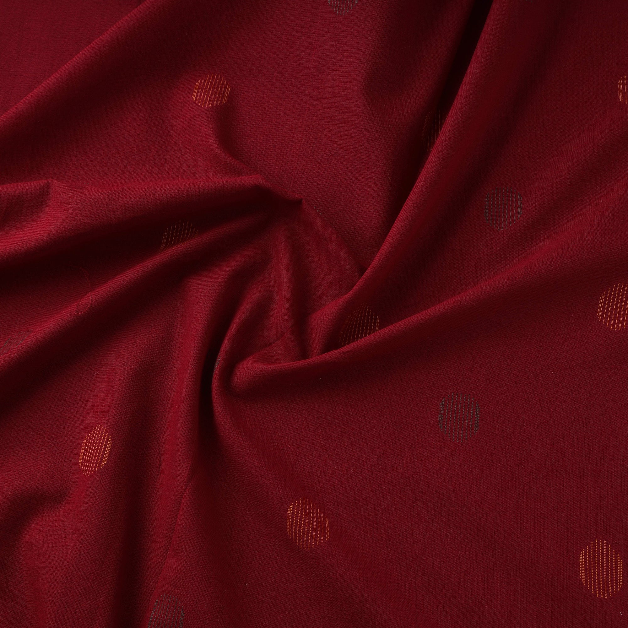 Pure cotton jacquard fabric from Tamil Nadu, jacquard is created using a technique that is over 200 years old, where patterns are formed directly during the weaving process. Its prewashed texture offers a smooth feel and easy drape, making it suitable for kurtas, dresses and home decor items.
