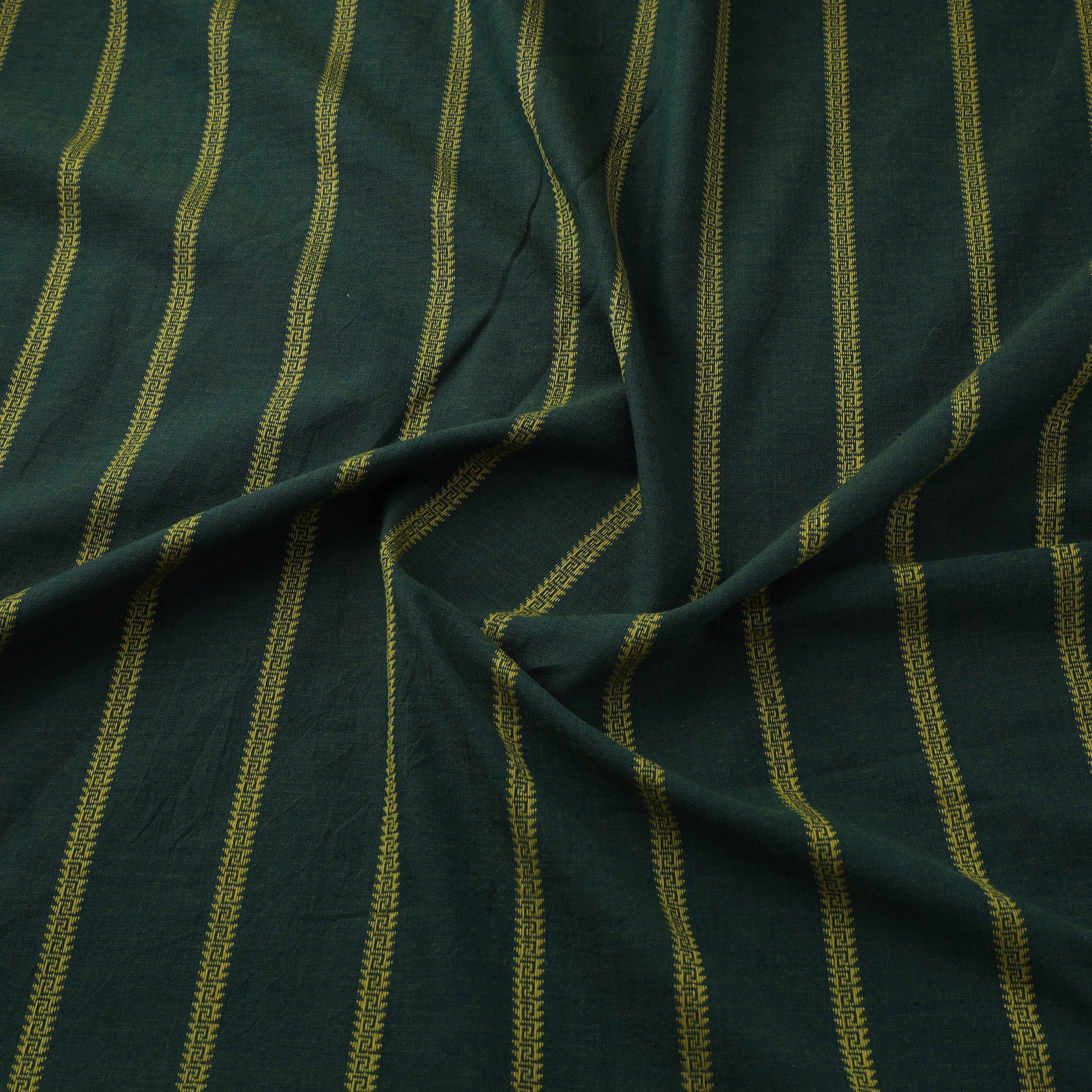 Woven in Tamil Nadu, this green jacquard cotton fabric features a traditionally inspired pattern crafted using a modern jacquard weaving technique. Its pre-washed finish offers a soft feel, perfect for making kurtas, dresses, or home décor accents. While machine-woven, it beautifully reflects the richness of India’s textile heritage.