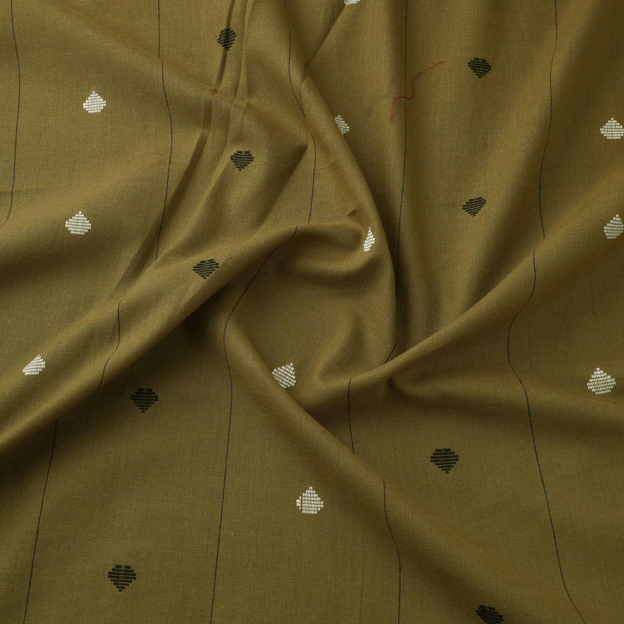 Woven in Tamil Nadu, this green jacquard cotton fabric features a traditionally inspired pattern crafted using a modern jacquard weaving technique. Its pre-washed finish offers a soft feel, perfect for making kurtas, dresses, or home décor accents. While machine-woven, it beautifully reflects the richness of India’s textile heritage.