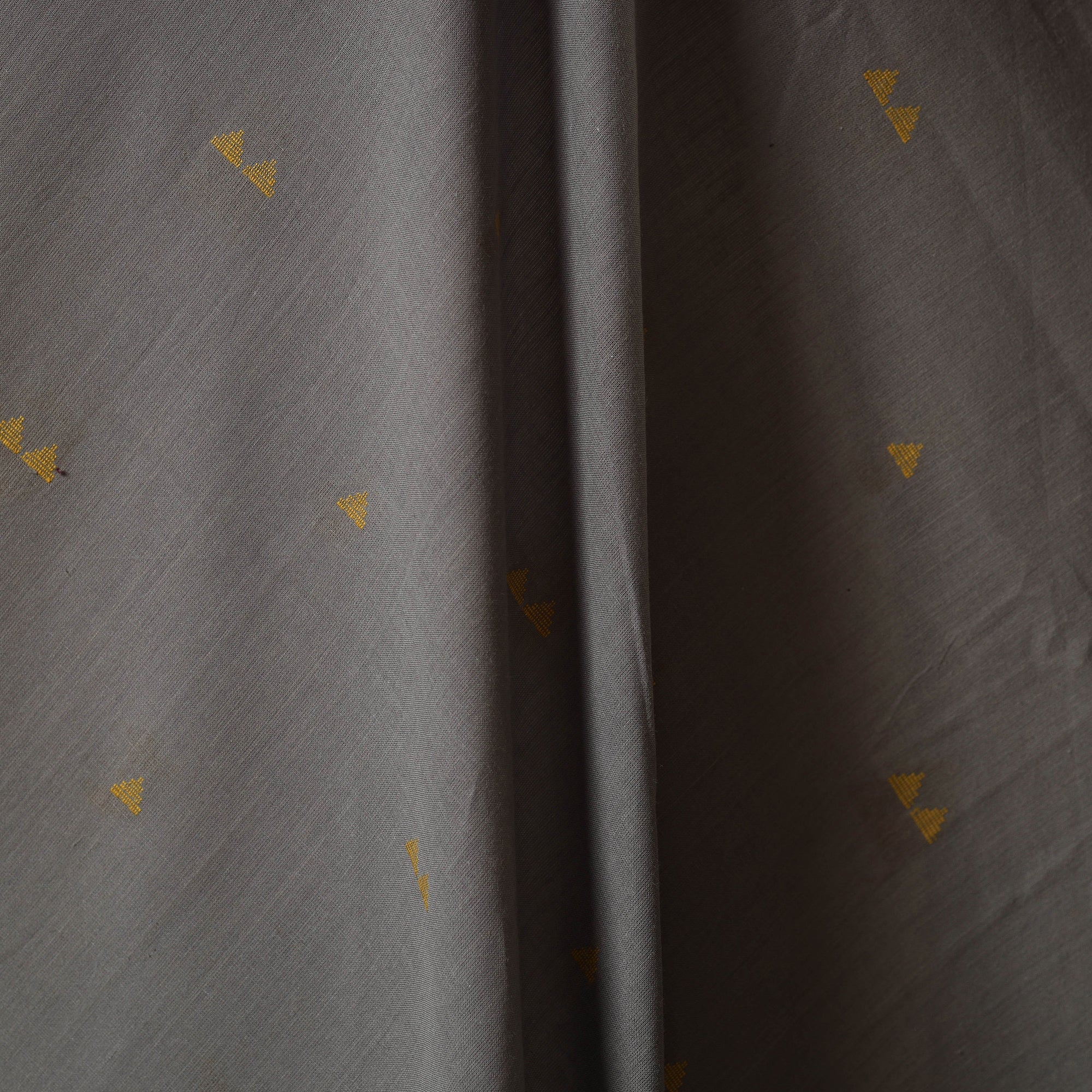 Woven in Telangana, this grey jacquard cotton fabric showcases a traditionally inspired pattern created through modern jacquard weaving. Its prewashed finish lends a smooth, soft touch, making it ideal for kurtas, dresses, or home décor accents. Though machine-woven, it beautifully captures the richness of India’s textile heritage.