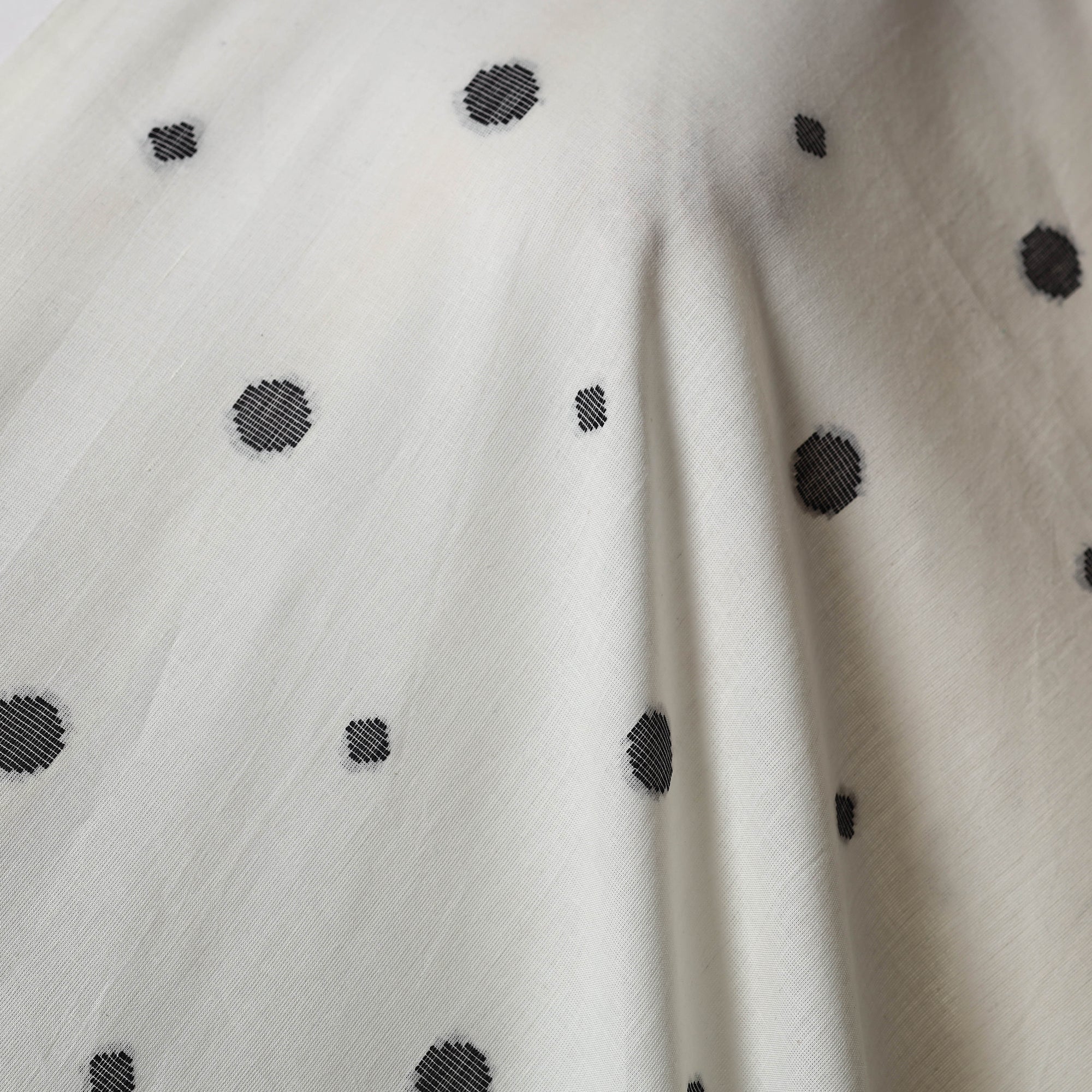 Woven in Tamil Nadu, this white jacquard cotton fabric highlights a traditional-inspired pattern crafted through modern jacquard weaving. Its prewashed finish adds a smooth, soft touch, making it perfect for kurtas, dresses, or home décor accents. While machine-woven, it beautifully reflects the richness of India’s textile heritage.