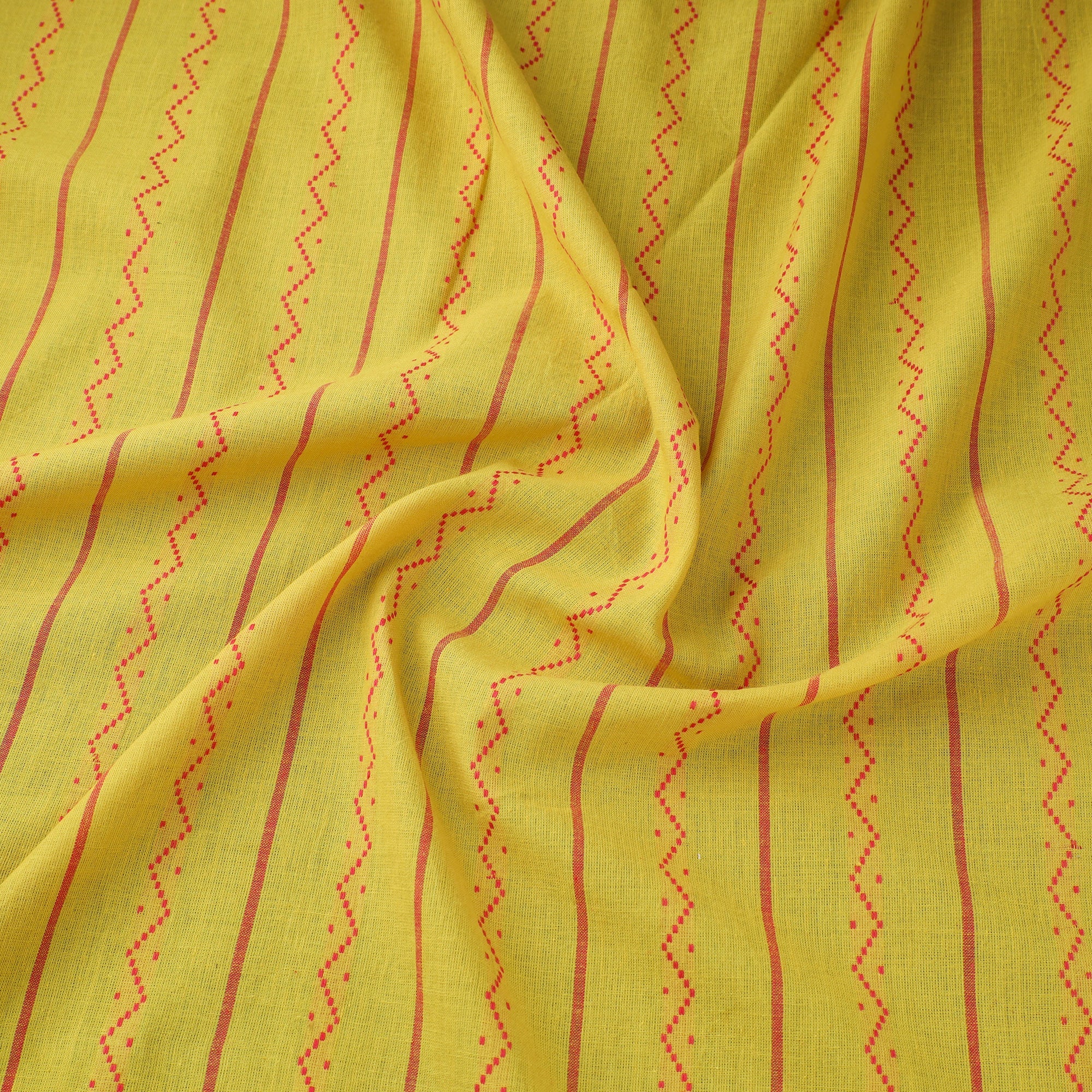 Woven in Tamil Nadu, this yellow jacquard cotton fabric features a traditionally inspired pattern crafted using a modern jacquard weaving technique. Its pre-washed finish offers a soft feel, perfect for making kurtas, dresses, or home décor accents. While machine-woven, it beautifully reflects the richness of India’s textile heritage.