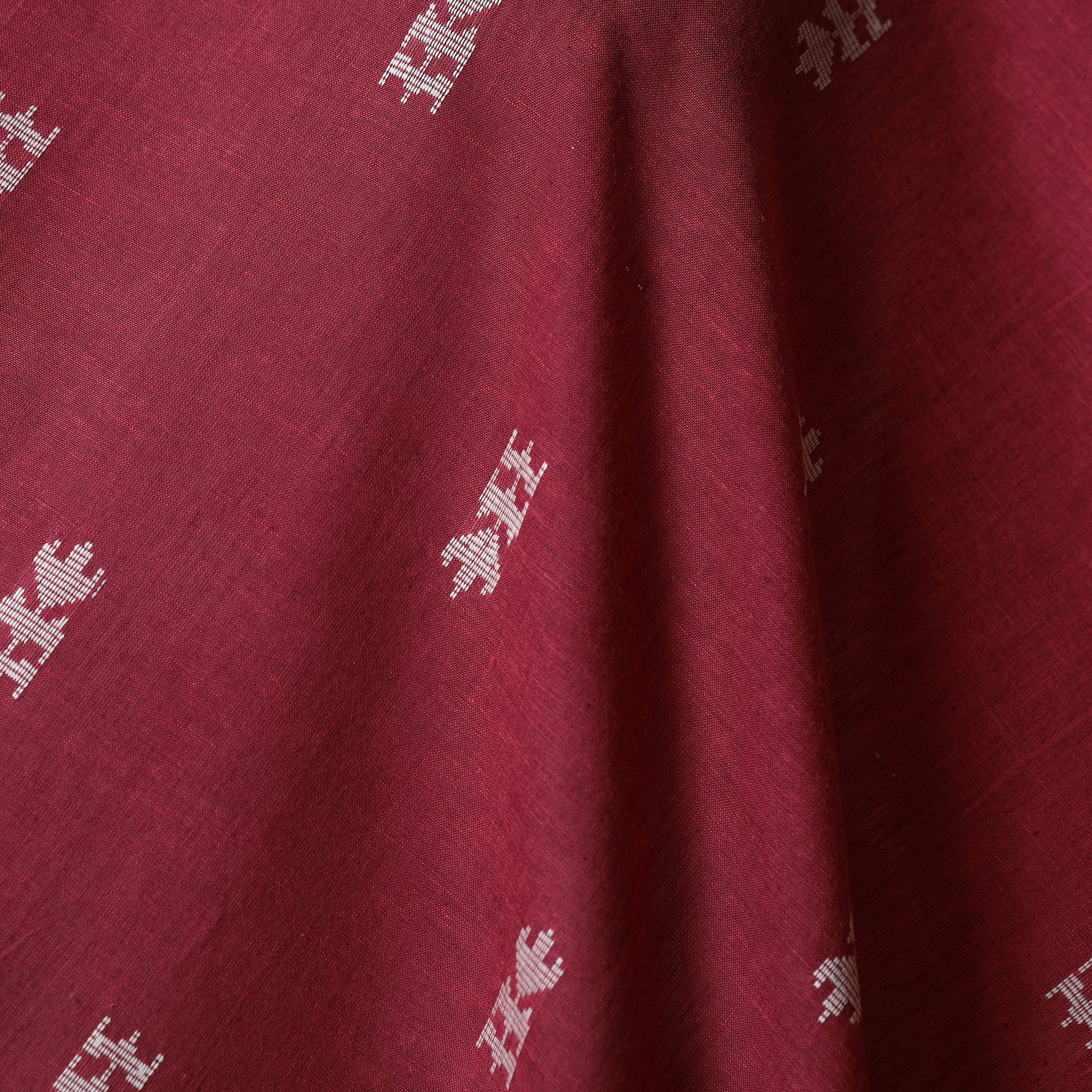 Woven in Tamil Nadu, this red jacquard cotton fabric highlights a traditional-inspired pattern crafted through modern jacquard weaving. Its prewashed finish adds a smooth, soft touch, making it perfect for kurtas, dresses, or home décor accents. While machine-woven, it beautifully reflects the richness of India’s textile heritage.