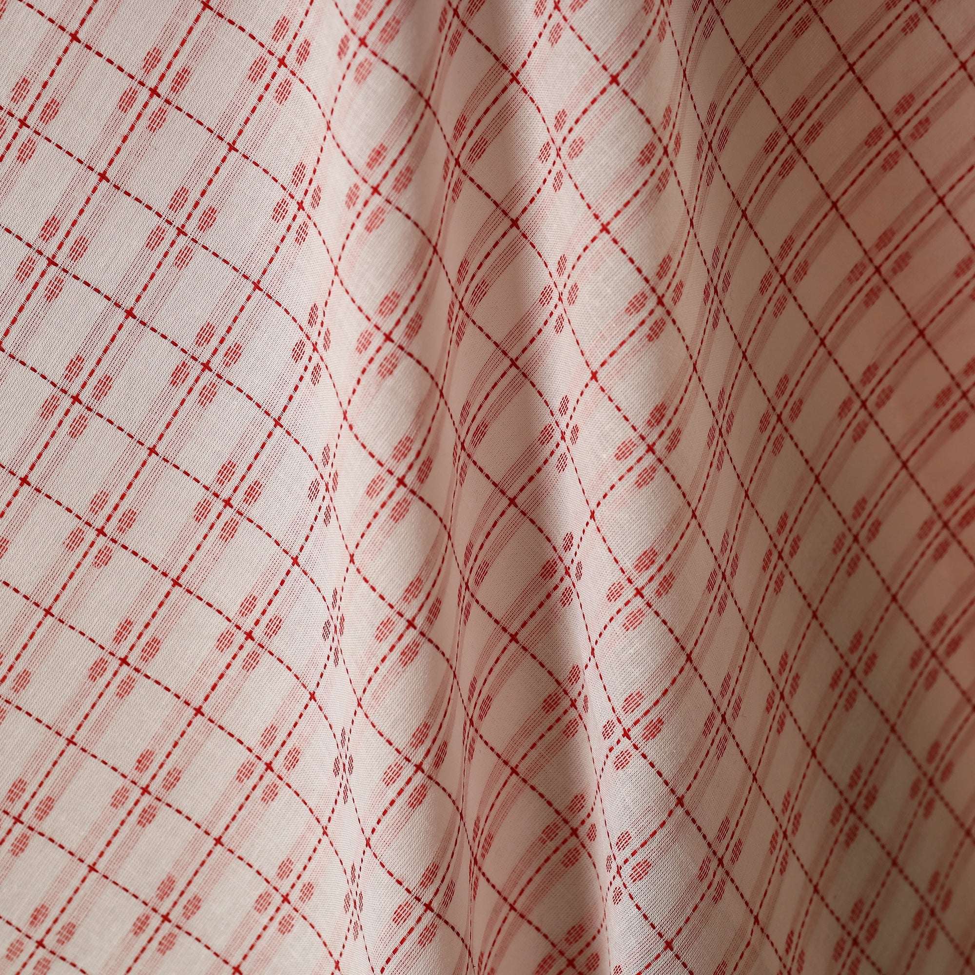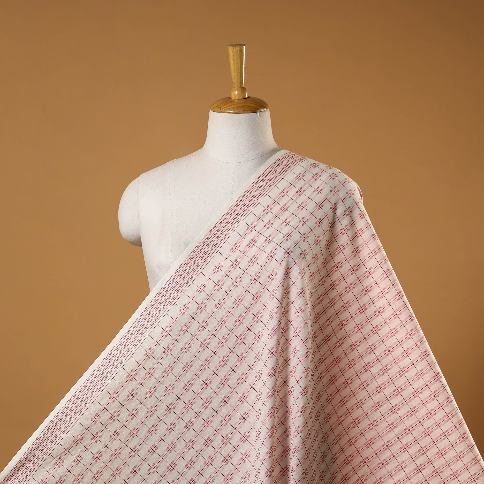 Woven in Telangana, this white jacquard cotton fabric showcases a traditionally inspired pattern created through modern jacquard weaving. Its prewashed finish lends a smooth, soft touch, making it ideal for kurtas, dresses, or home décor accents. Though machine-woven, it beautifully captures the richness of India’s textile heritage.