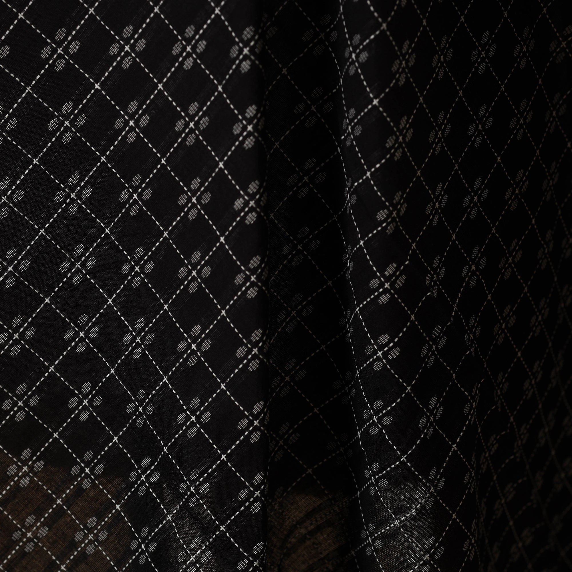 Woven in Telangana, this black jacquard cotton fabric showcases a traditionally inspired pattern created through modern jacquard weaving. Its prewashed finish lends a smooth, soft touch, making it ideal for kurtas, dresses, or home décor accents. Though machine-woven, it beautifully captures the richness of India’s textile heritage.