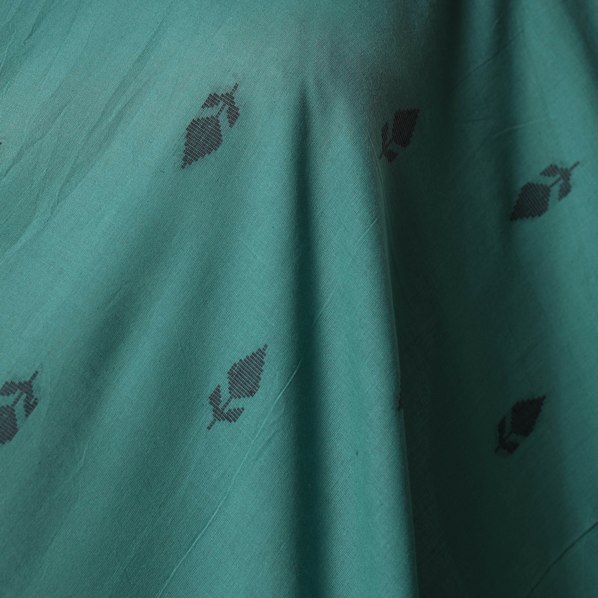 Woven in Tamil Nadu, this green jacquard cotton fabric highlights a traditional-inspired pattern crafted through modern jacquard weaving. Its prewashed finish adds a smooth, soft touch, making it perfect for kurtas, dresses, or home décor accents. While machine-woven, it beautifully reflects the richness of India’s textile heritage.