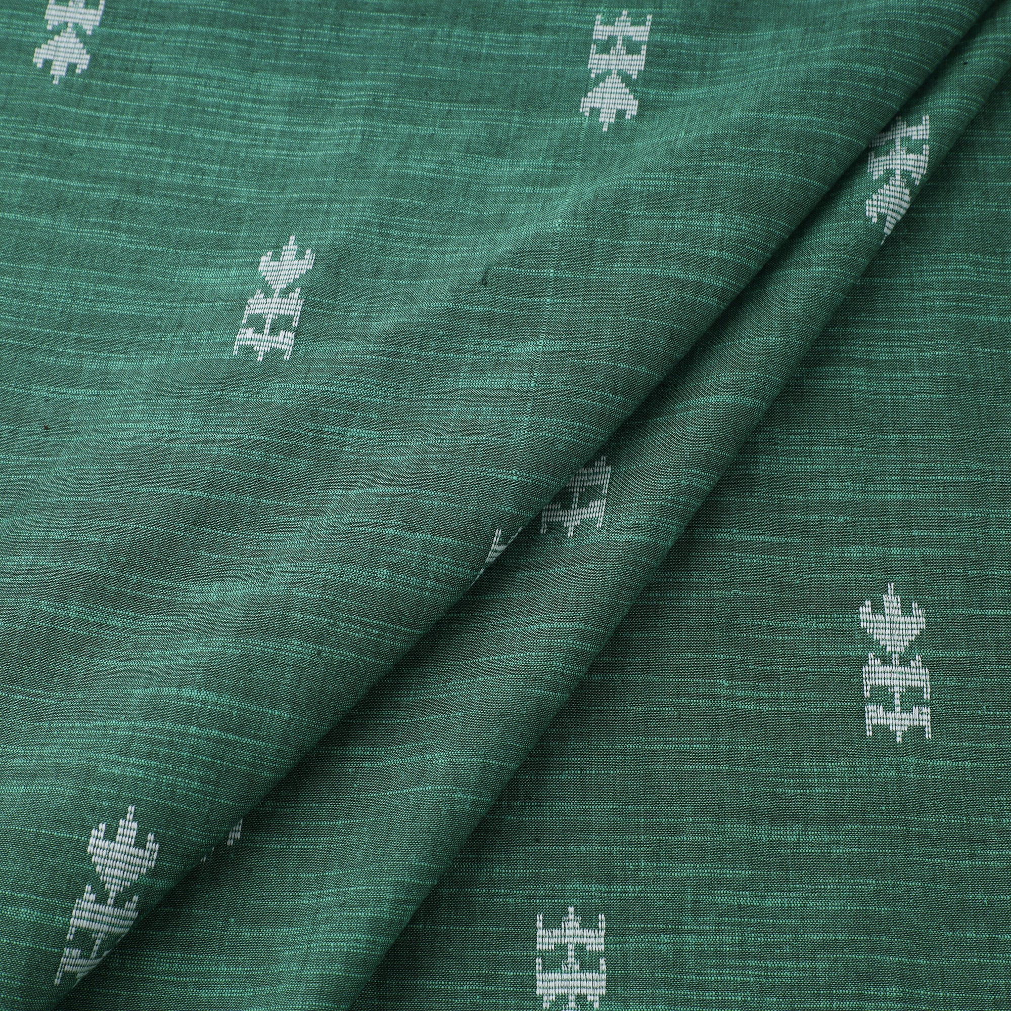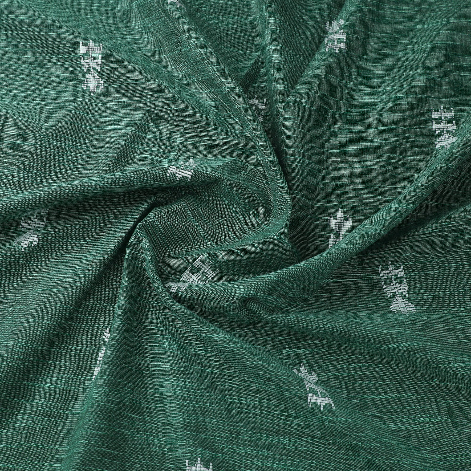 Woven in Tamil Nadu, this green jacquard cotton fabric features a traditionally inspired pattern crafted using a modern jacquard weaving technique. Its pre-washed finish offers a soft feel, perfect for making kurtas, dresses, or home décor accents. While machine-woven, it beautifully reflects the richness of India’s textile heritage.