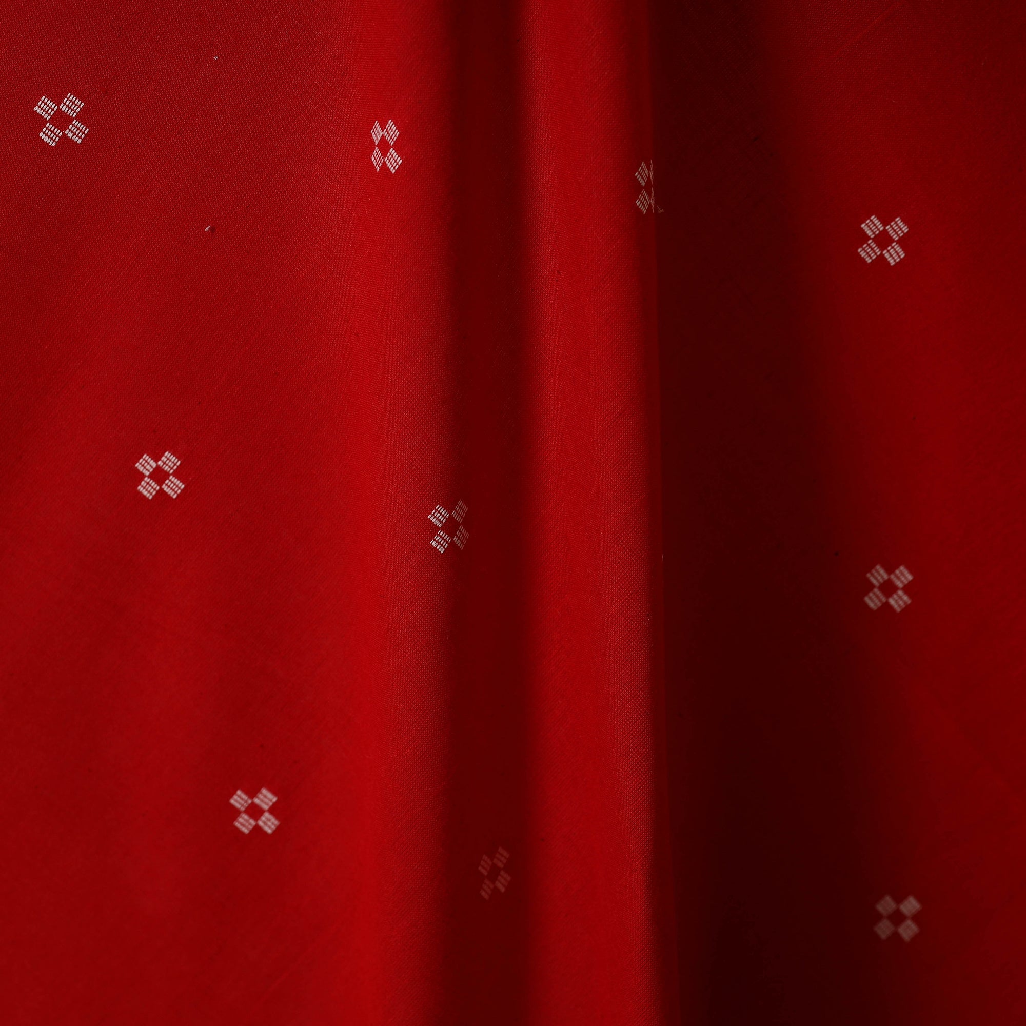 Woven in Telangana, this red jacquard cotton fabric showcases a traditionally inspired pattern created through modern jacquard weaving. Its prewashed finish lends a smooth, soft touch, making it ideal for kurtas, dresses, or home décor accents. Though machine-woven, it beautifully captures the richness of India’s textile heritage.