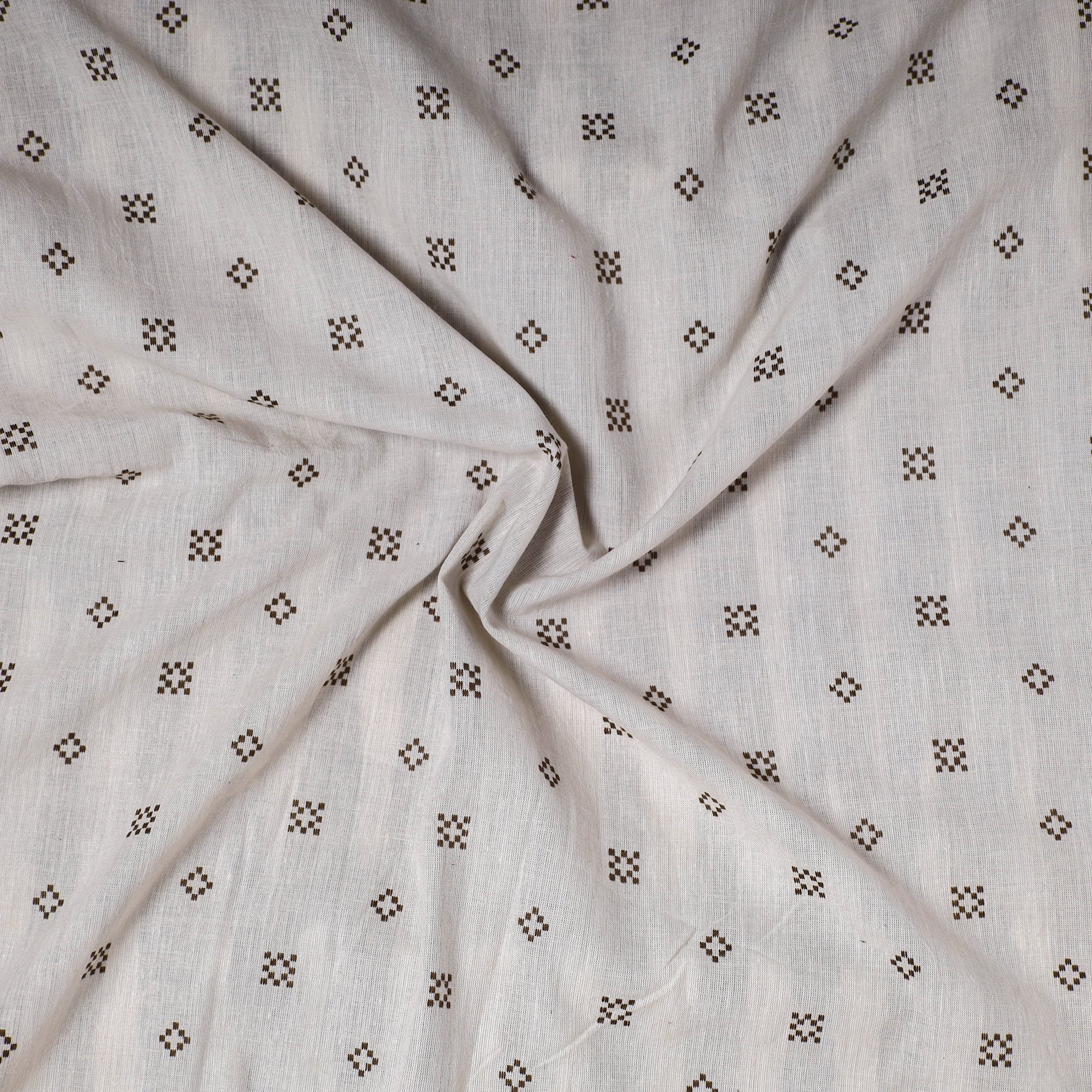 | Material | White jacquard cotton precut fabric combines traditional designs with modern weaving. Its prewashed texture gives a smooth feel and easy drape, making it perfect for blouses, trendy bags or home decor items. Though machine-woven, it still reflects the beauty of India’s rich textile heritage. Note: This piece carries tiny knots, thread pulls or uneven lines not flaws but fingerprints. Every irregularity is a whisper from the hands that made it. It’s what happens when tradition weaves through time not machines. If you’re looking for perfection, this isn’t it. But if you’re looking for soul you’ve found it. |