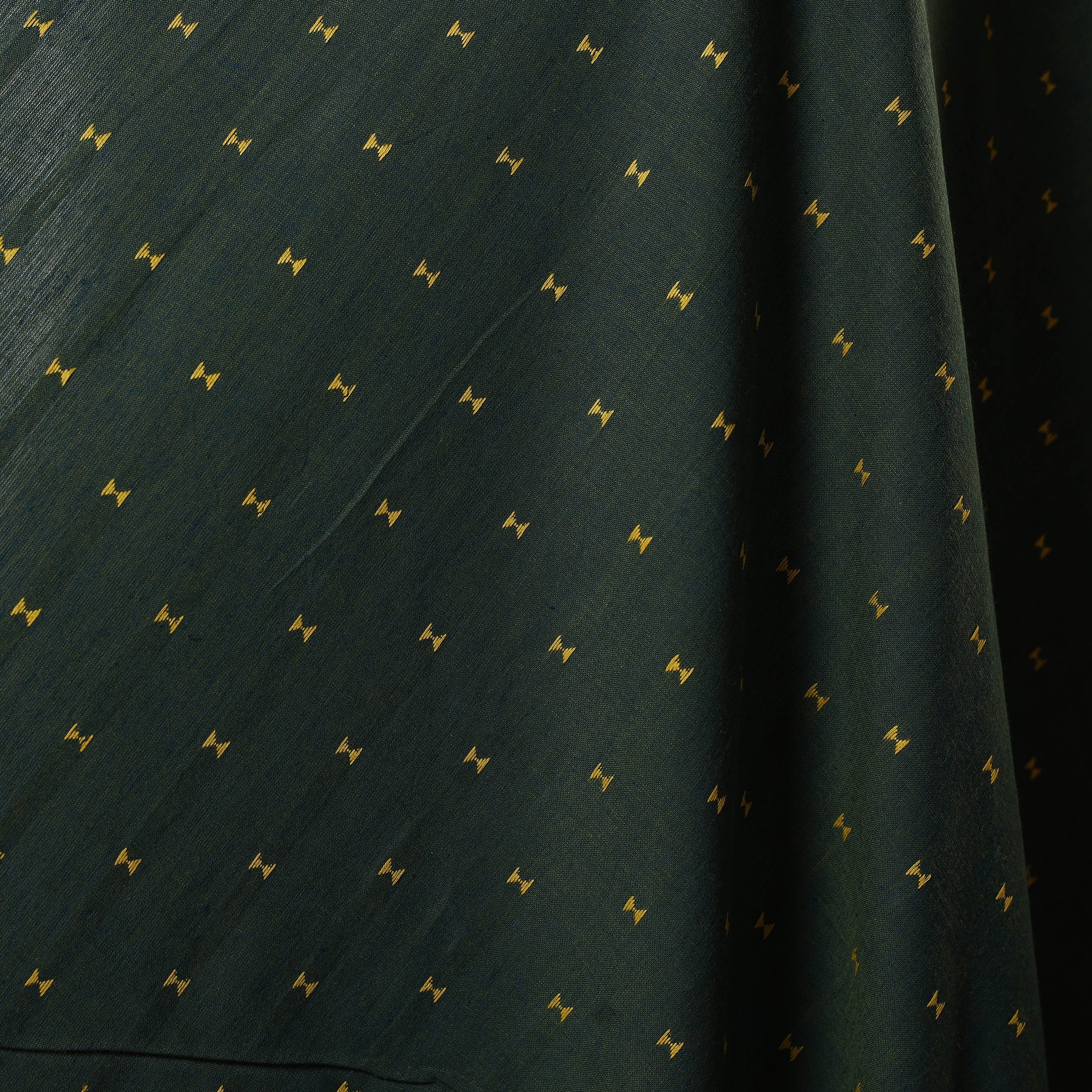 Woven in Tamil Nadu, this green jacquard cotton fabric features a traditionally inspired pattern crafted using a modern jacquard weaving technique. Its pre-washed finish offers a soft feel, perfect for making kurtas, dresses, or home décor accents. While machine-woven, it beautifully reflects the richness of India’s textile heritage.