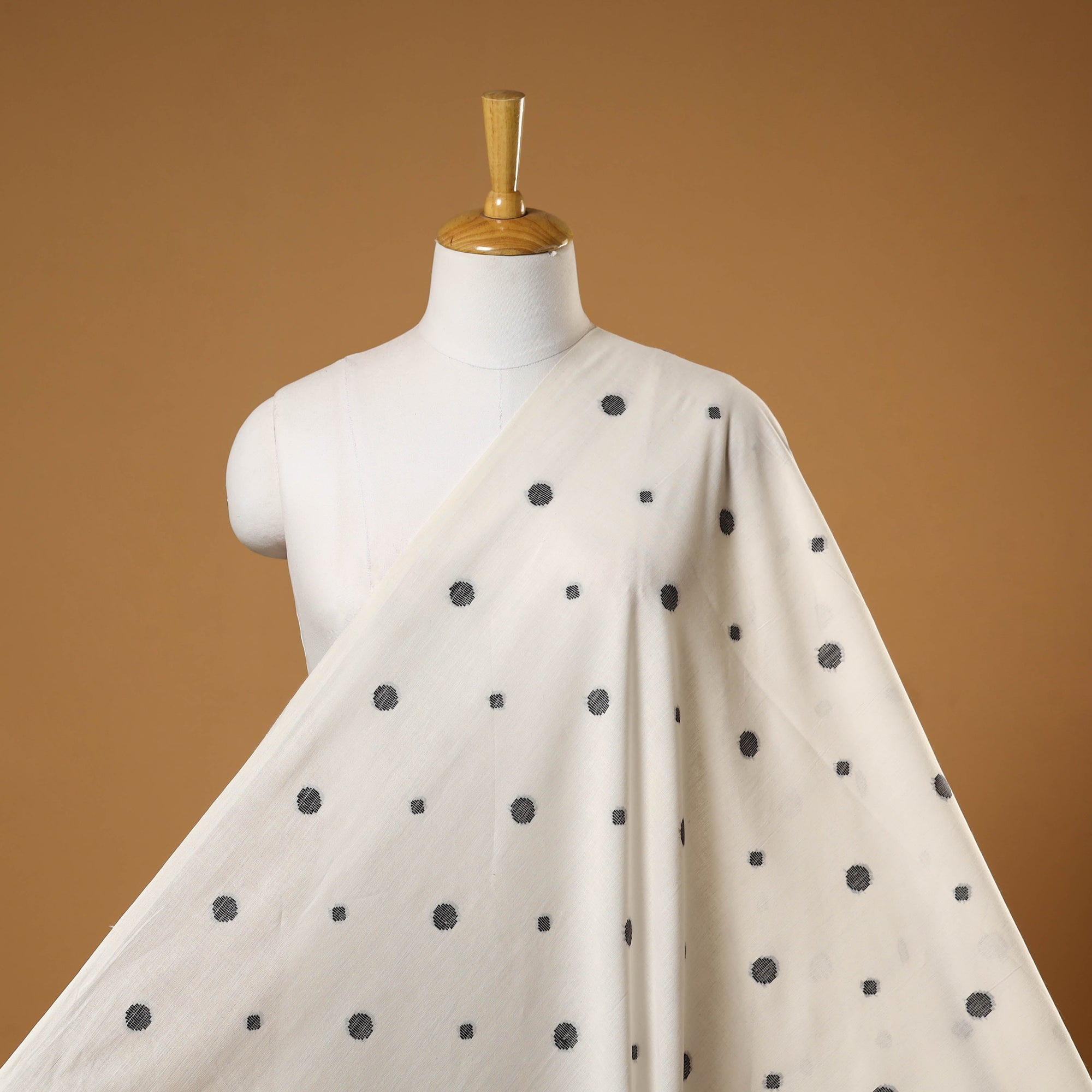 Woven in Tamil Nadu, this white jacquard cotton fabric presents a traditional-inspired pattern crafted through modern jacquard weaving. Its prewashed finish gives a smooth, soft feel, making it perfect for kurtas, dresses, or home décor accents. Even though it is machine-woven, it reflects the richness of India’s textile heritage.