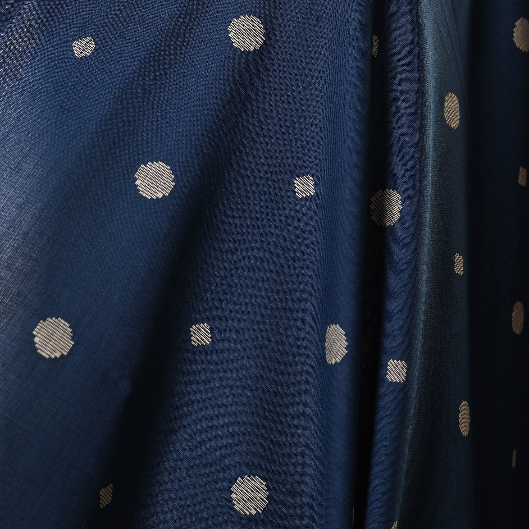 Woven in Tamil Nadu, this blue jacquard cotton fabric features a traditionally inspired pattern crafted using a modern jacquard weaving technique. Its pre-washed finish offers a soft feel, perfect for making kurtas, dresses, or home décor accents. While machine-woven, it beautifully reflects the richness of India’s textile heritage.
