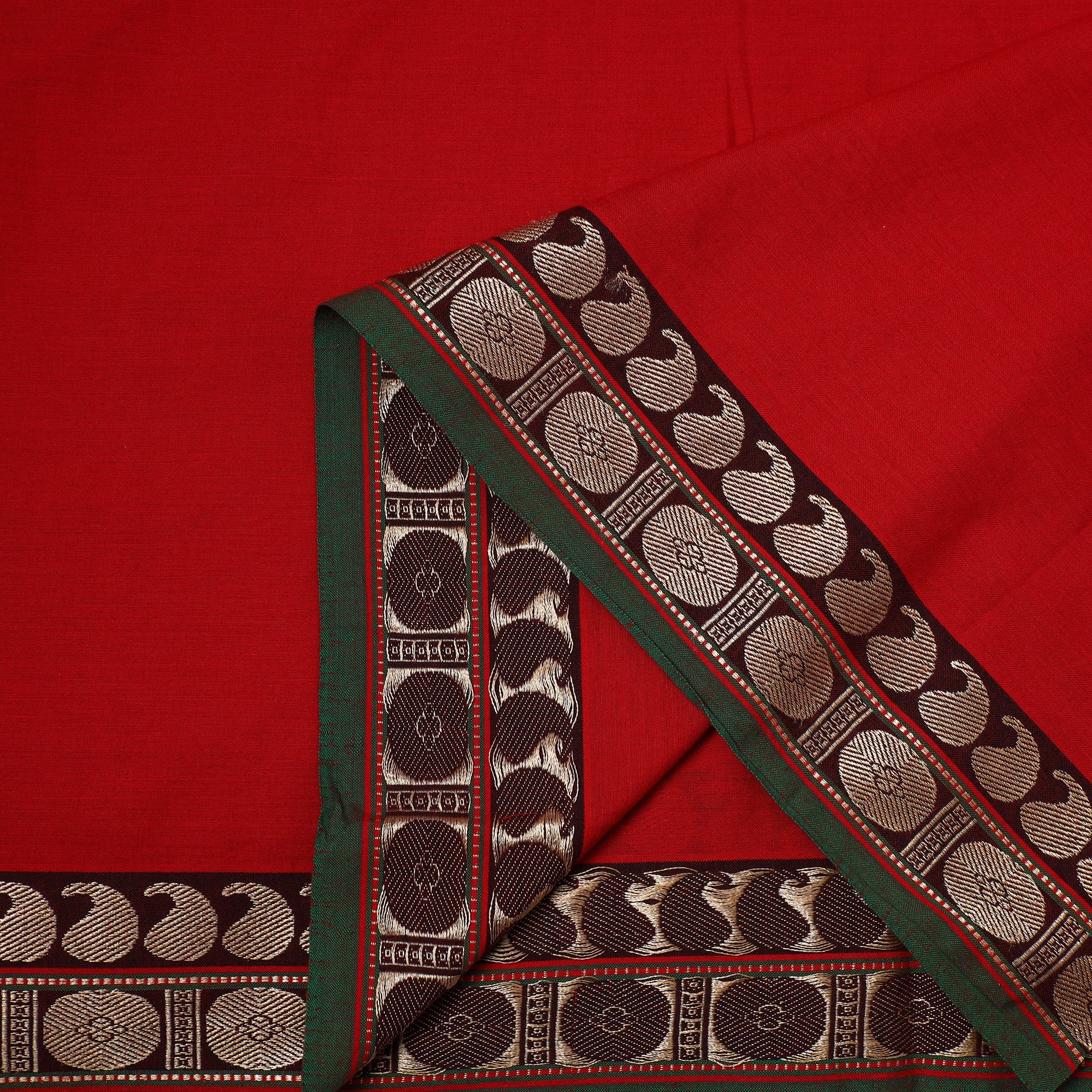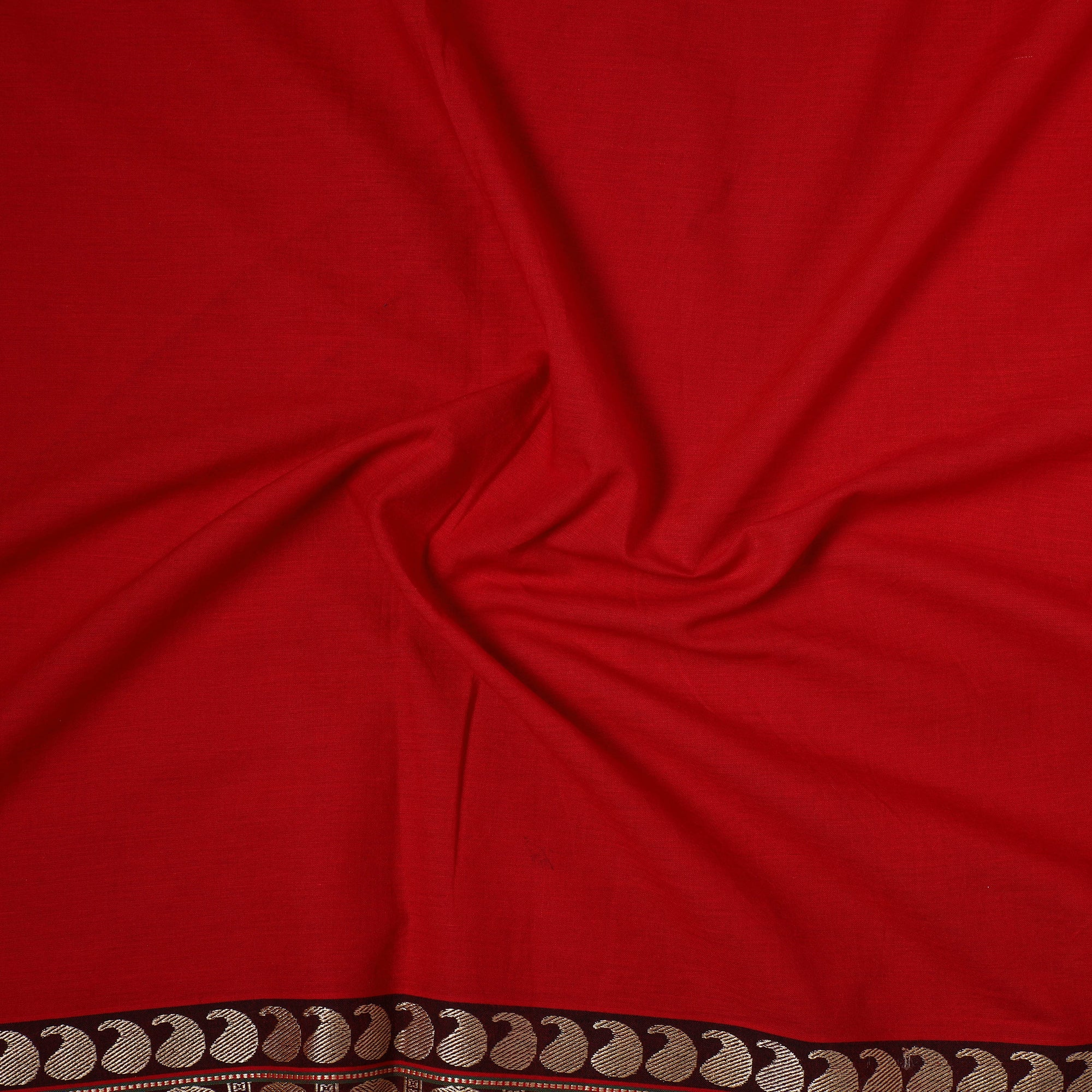 Fine-quality red prewashed dharwad cotton fabric with a traditional thread-woven border from Dharwad, Karnataka. Machine-made with no handmade process involved. Perfect for clothing, home decor, and creative craft projects, this fabric brings a heritage-inspired touch to your creations.