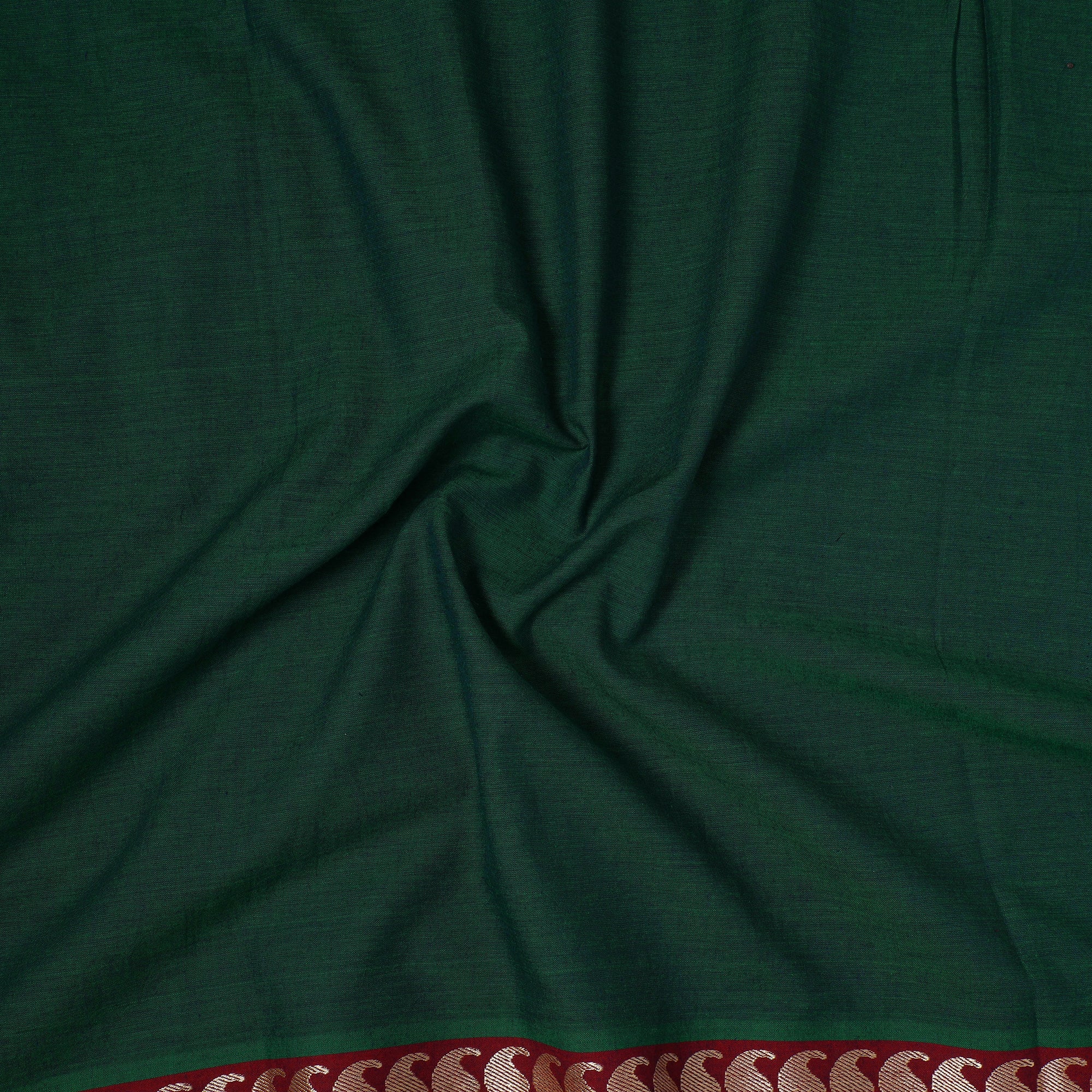 Fine-quality green prewashed dharwad cotton fabric with a traditional thread-woven border from Dharwad, Karnataka. Machine-made with no handmade process involved. Perfect for clothing, home decor, and creative craft projects, this fabric brings a heritage-inspired touch to your creations.
