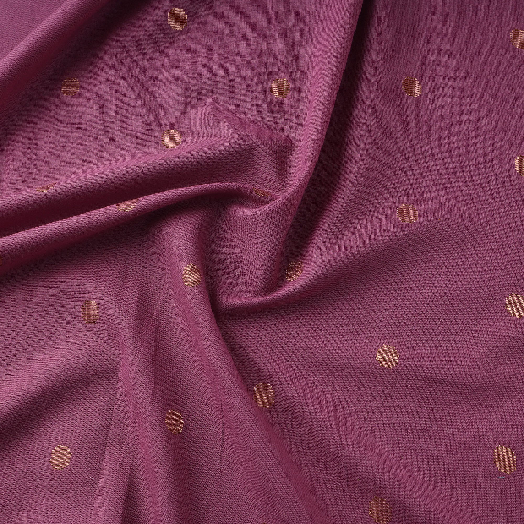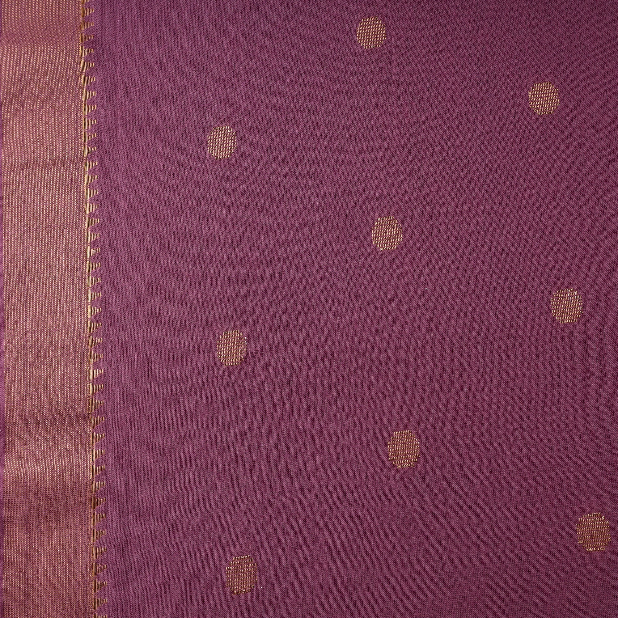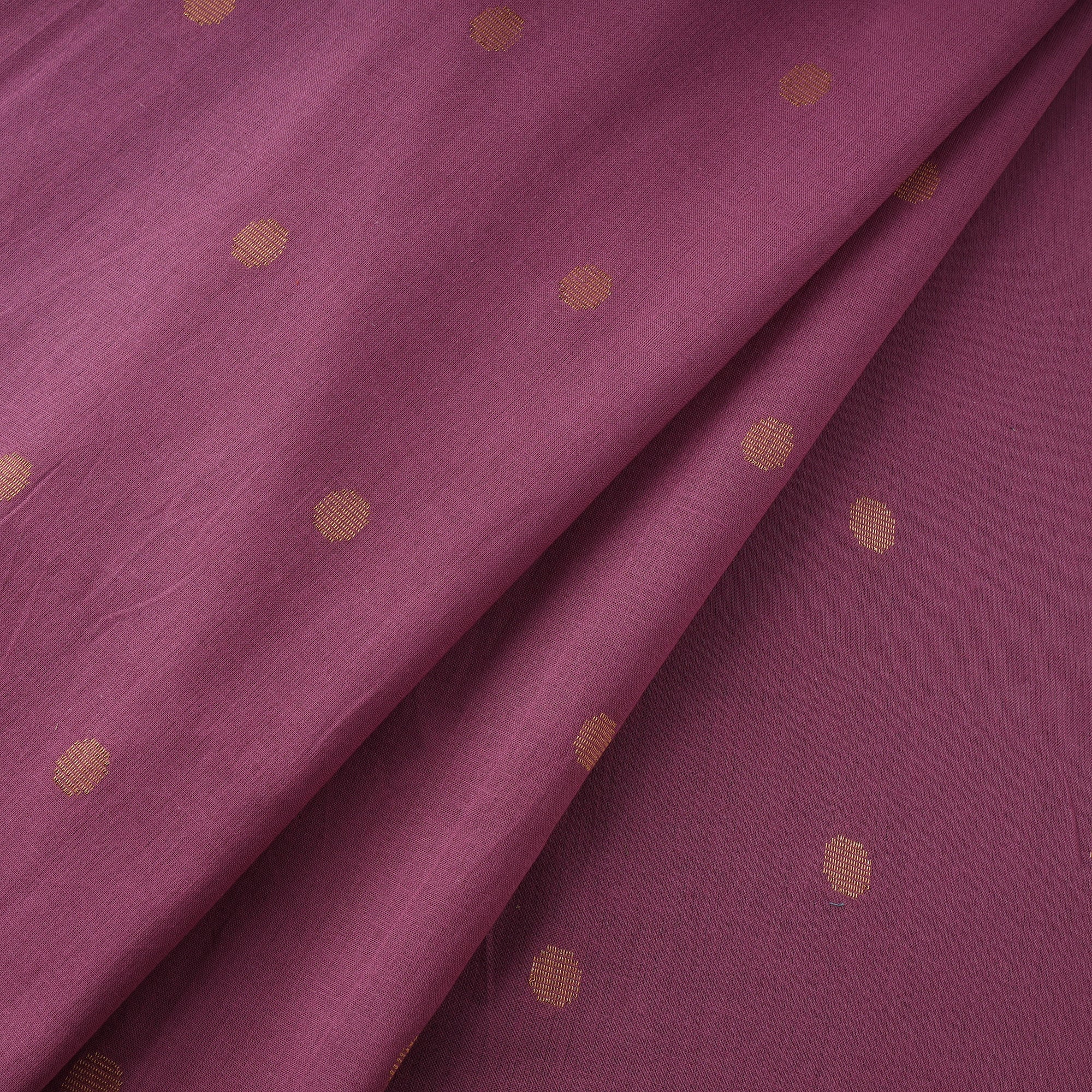 Zari buti jacquard cotton fabric with border from Tamil Nadu, jacquard is created using a technique that is over 200 years old, where patterns are formed directly during the weaving process. Its prewashed texture offers a smooth feel and easy drape, making it suitable for kurtas, dresses, and home décor items.