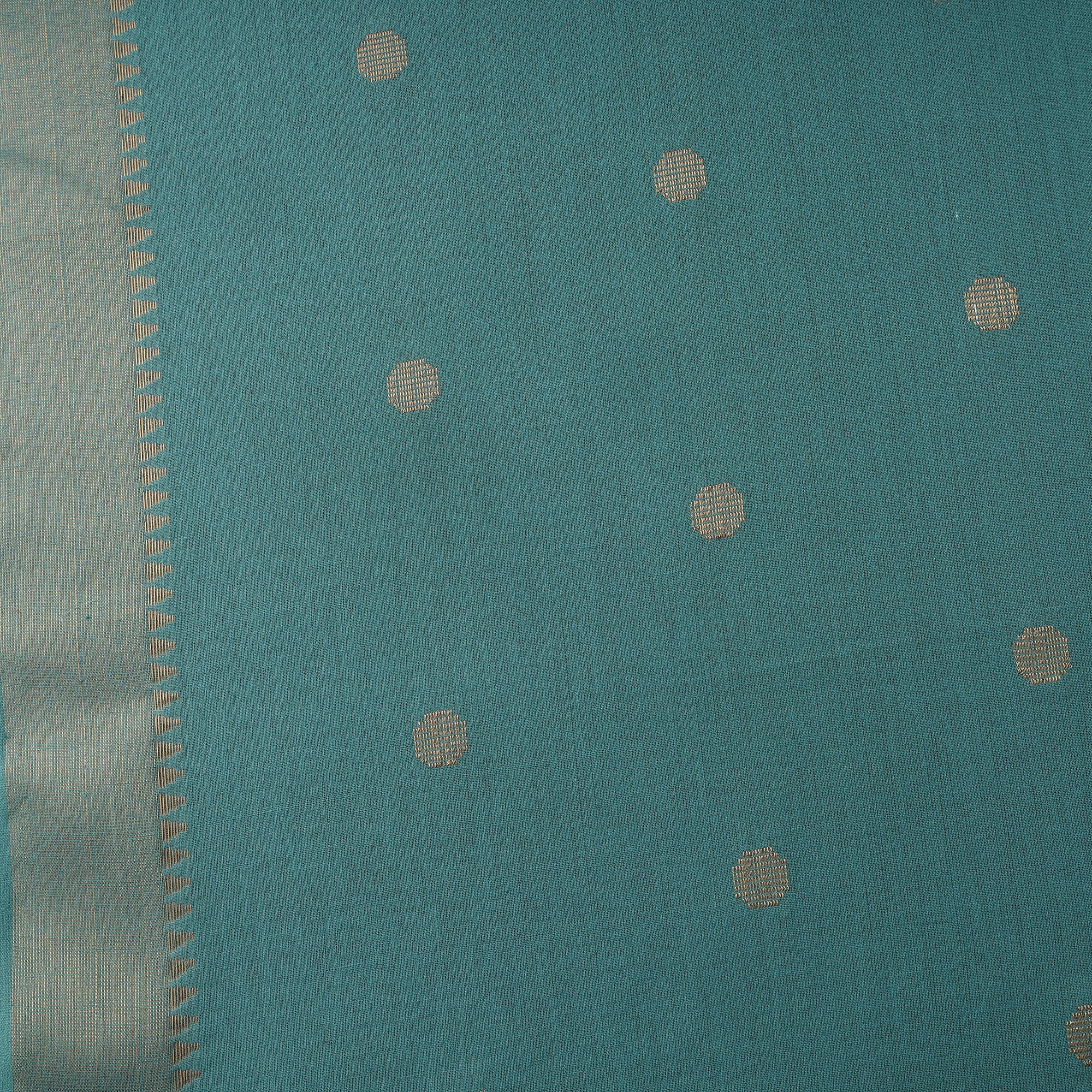 Zari buti jacquard cotton fabric with border from Tamil Nadu, jacquard is created using a technique that is over 200 years old, where patterns are formed directly during the weaving process. Its prewashed texture offers a smooth feel and easy drape, making it suitable for kurtas, dresses, and home décor items.