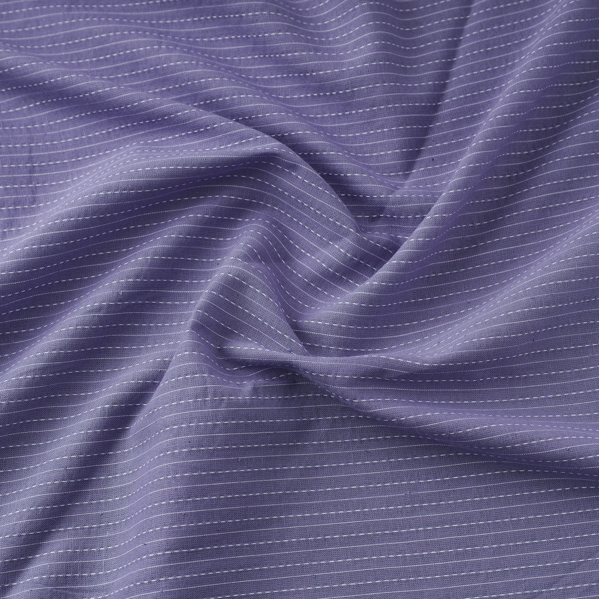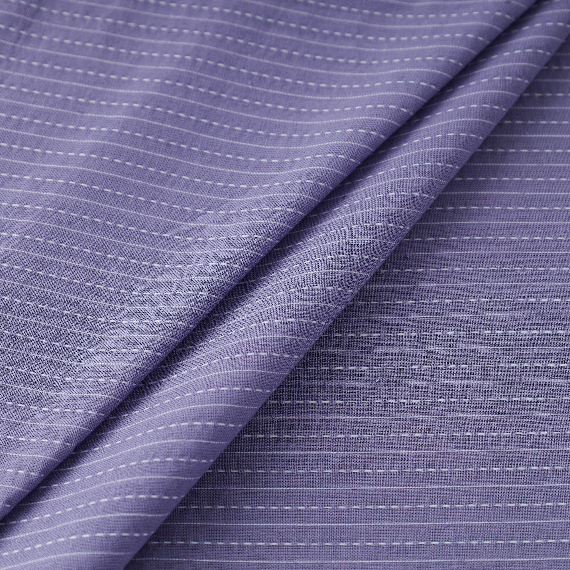 This purple prewashed running stitch cotton fabric is of fine quality and has been dyed a plain color. It was machine made and not created through handmade processes. The fabric originates from Jaipur, Rajasthan, and is ideal for a variety of projects due to its softness and durability.