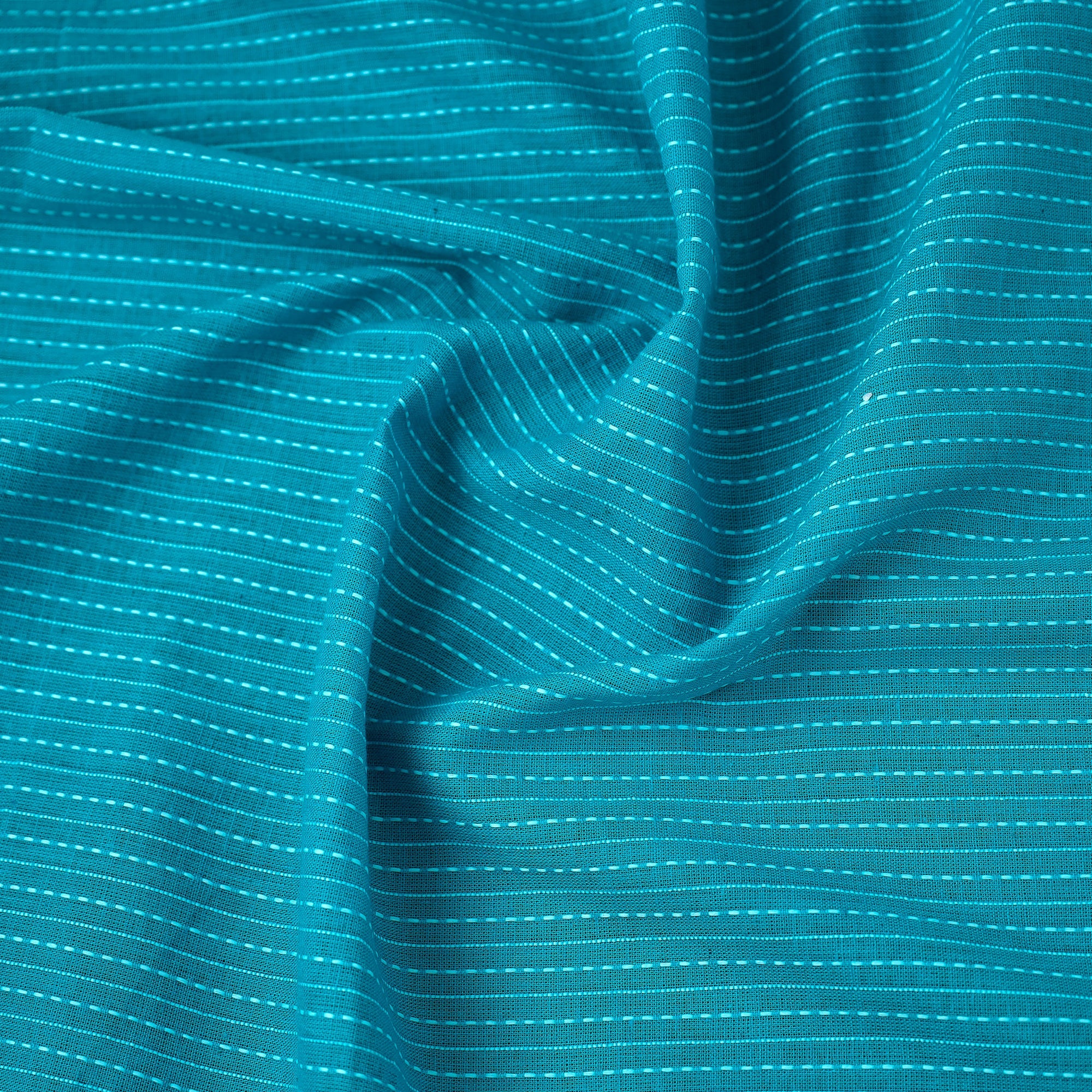 Elevate your sewing and crafting with this blue prewashed running stitch plain cotton fabric. Whether you're designing stylish outfits or adding a touch of elegance to your home décor, its soft texture and durability make it a must have.