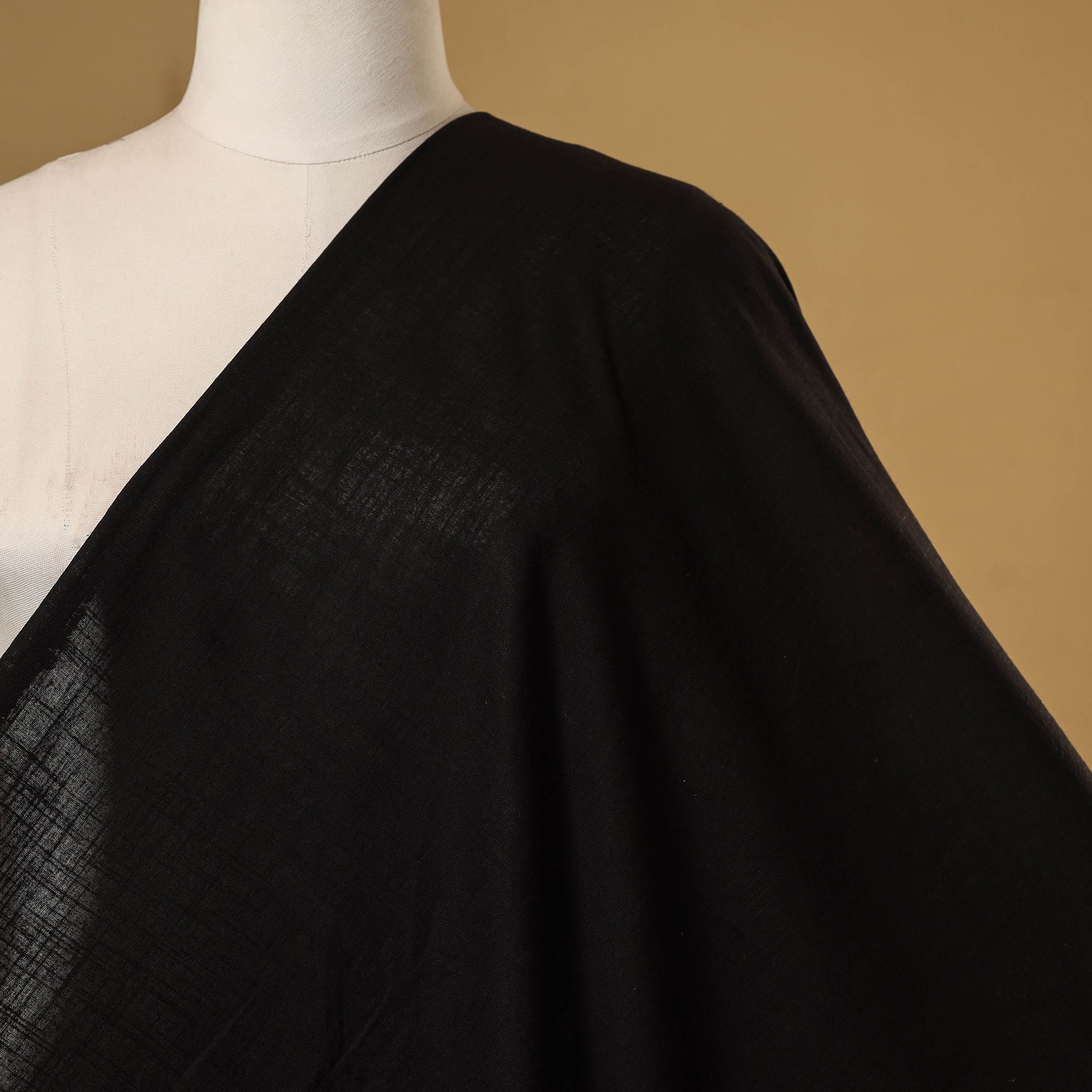 Black prewashed slub cotton plain fabric from Jaipur, Rajasthan. Slub cotton has a slightly uneven texture with thicker and thinner threads, giving it a unique look and feel. It's ideal for stitching your favourite kurtas, suits or for making simple home decor items like cushion covers and curtains. This is a machine made fabric no handmade process has been involved.