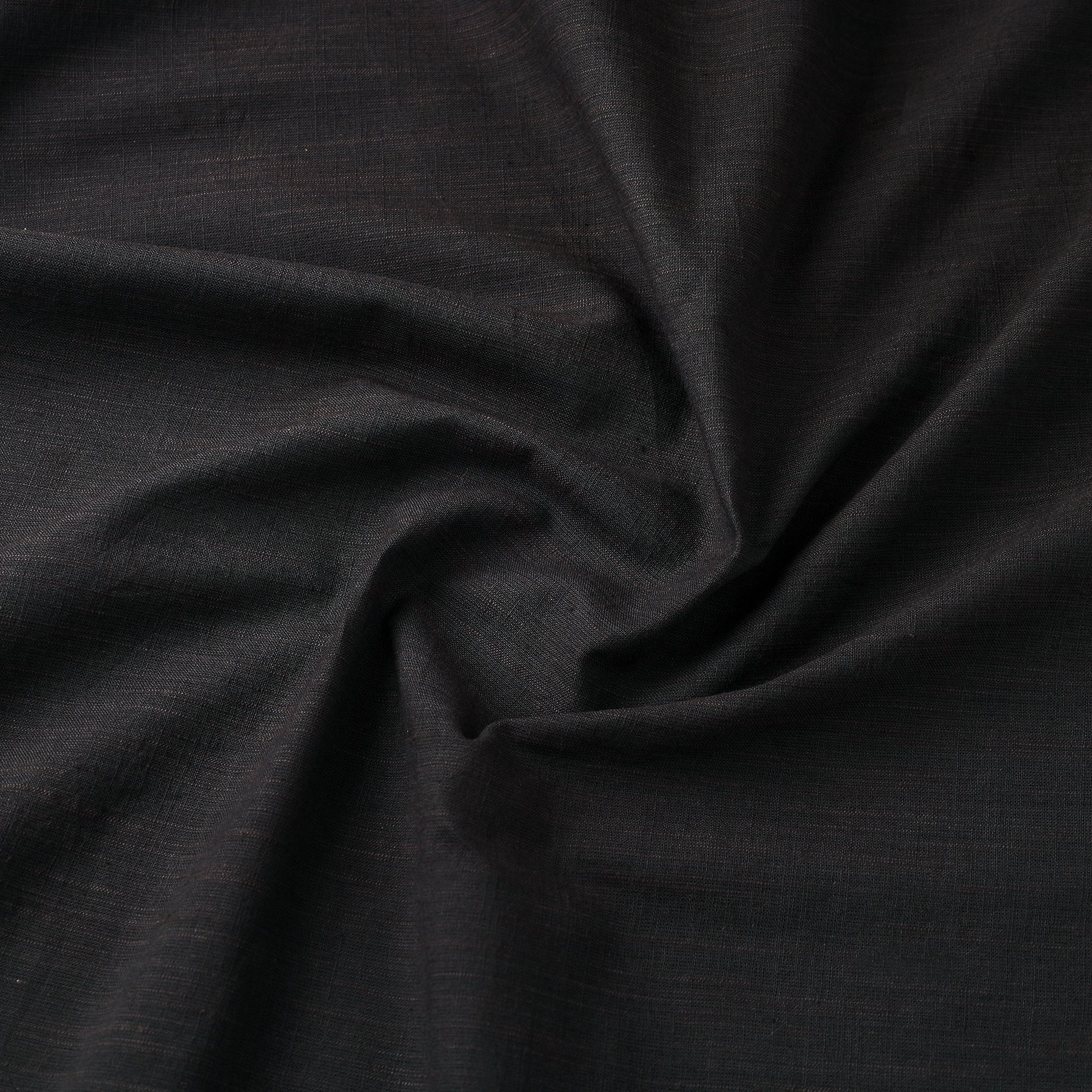 This black prewashed slub cotton fabric offers both comfort and long-lasting use. With its naturally uneven texture created by thicker and thinner threads, slub cotton adds a distinct charm. Perfect for designing everyday kurtas, suits, or adding a soft accent to your home with cushion covers and curtains.