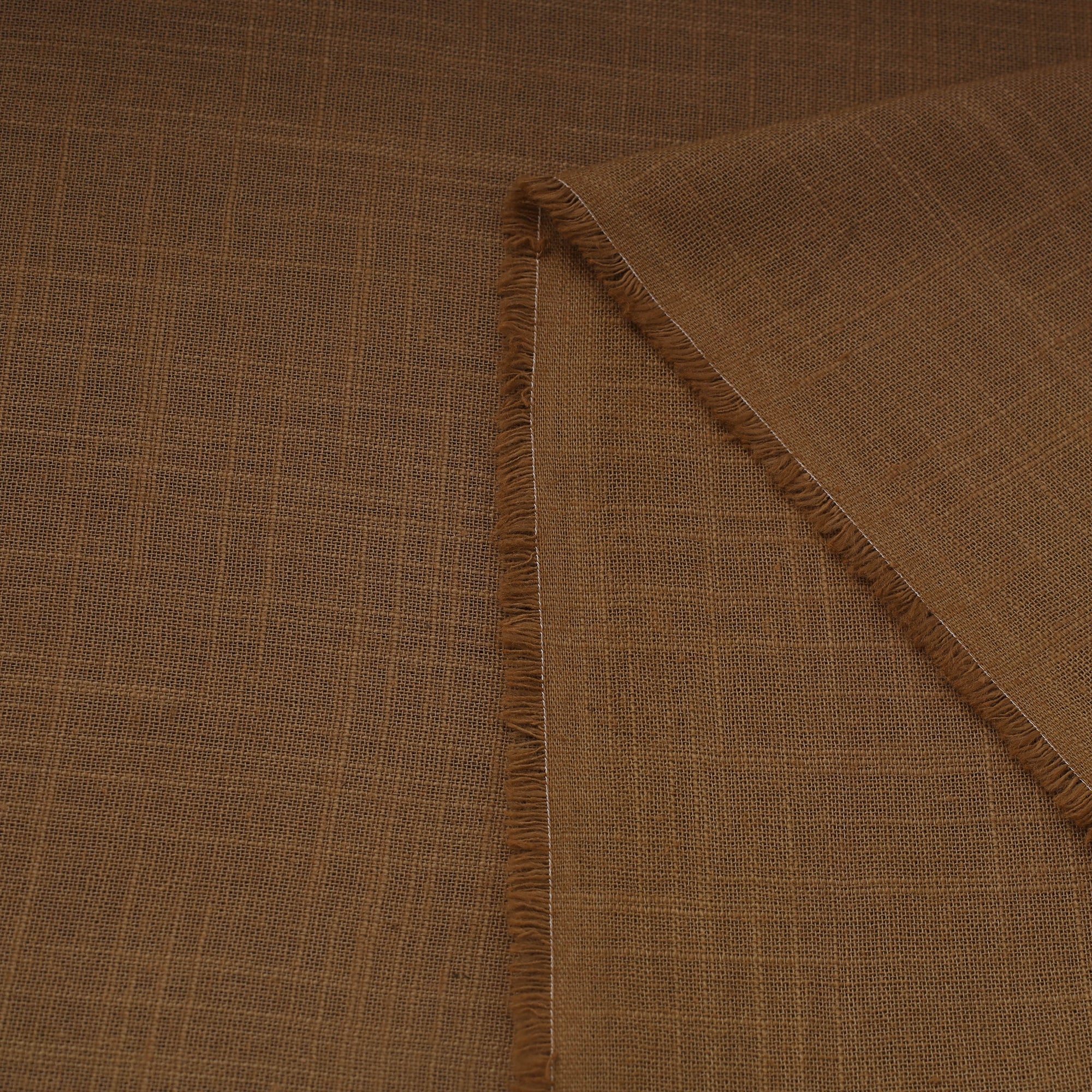 This brown prewashed slub cotton plain fabric from Jaipur, Rajasthan. Slub cotton has a slightly uneven texture with thicker and thinner threads, giving it a unique look and feel. It's ideal for stitching your favourite kurtas, suits, or for making simple home decor items like cushion covers and curtains. This is a machine made fabric, no handmade process has been involved.