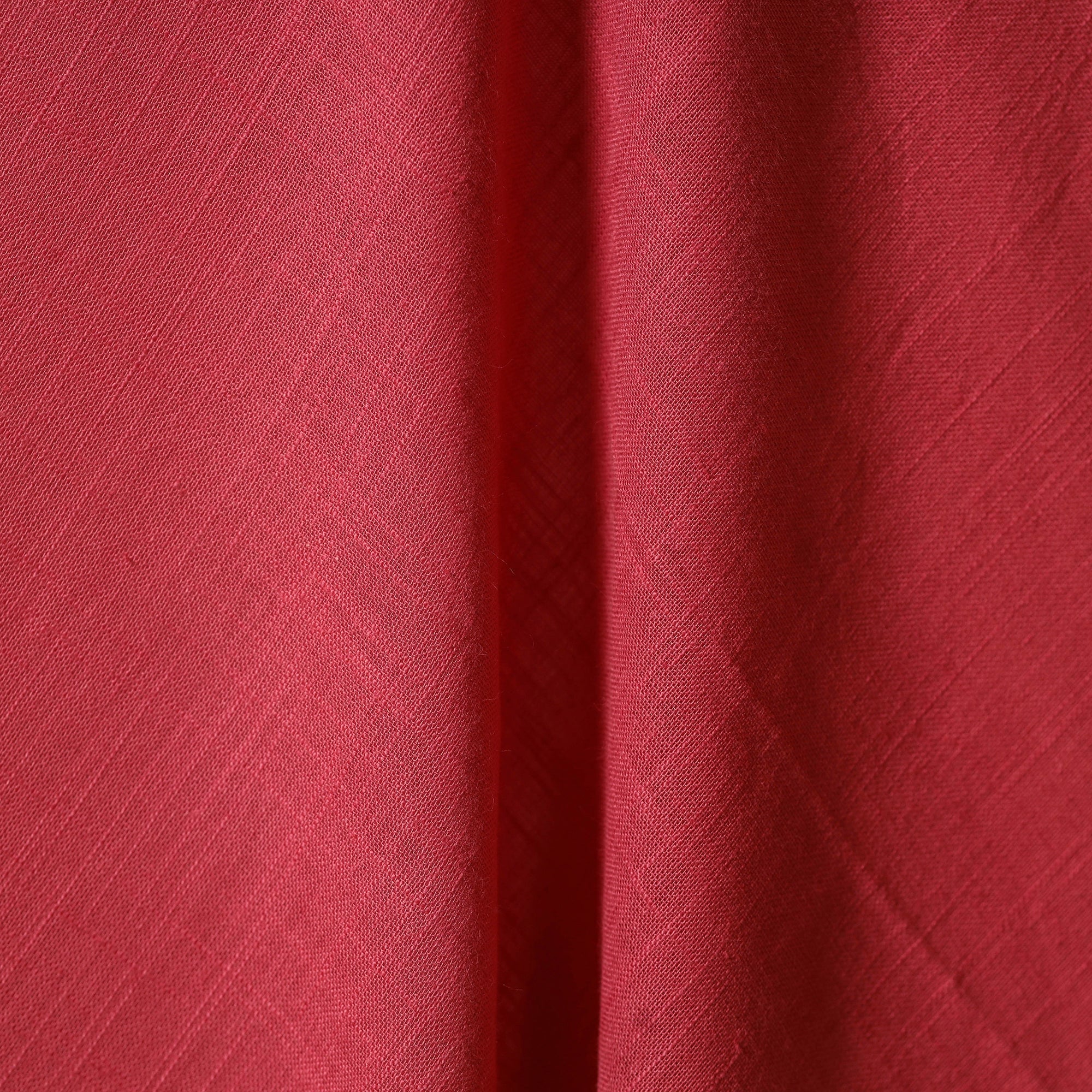Pink prewashed slub cotton plain fabric from Jaipur, Rajasthan. Slub cotton has a slightly uneven texture with thicker and thinner threads, giving it a unique look and feel. It's ideal for stitching your favourite kurtas, suits or for making simple home decor items like cushion covers and curtains. This is a machine made fabric no handmade process has been involved.