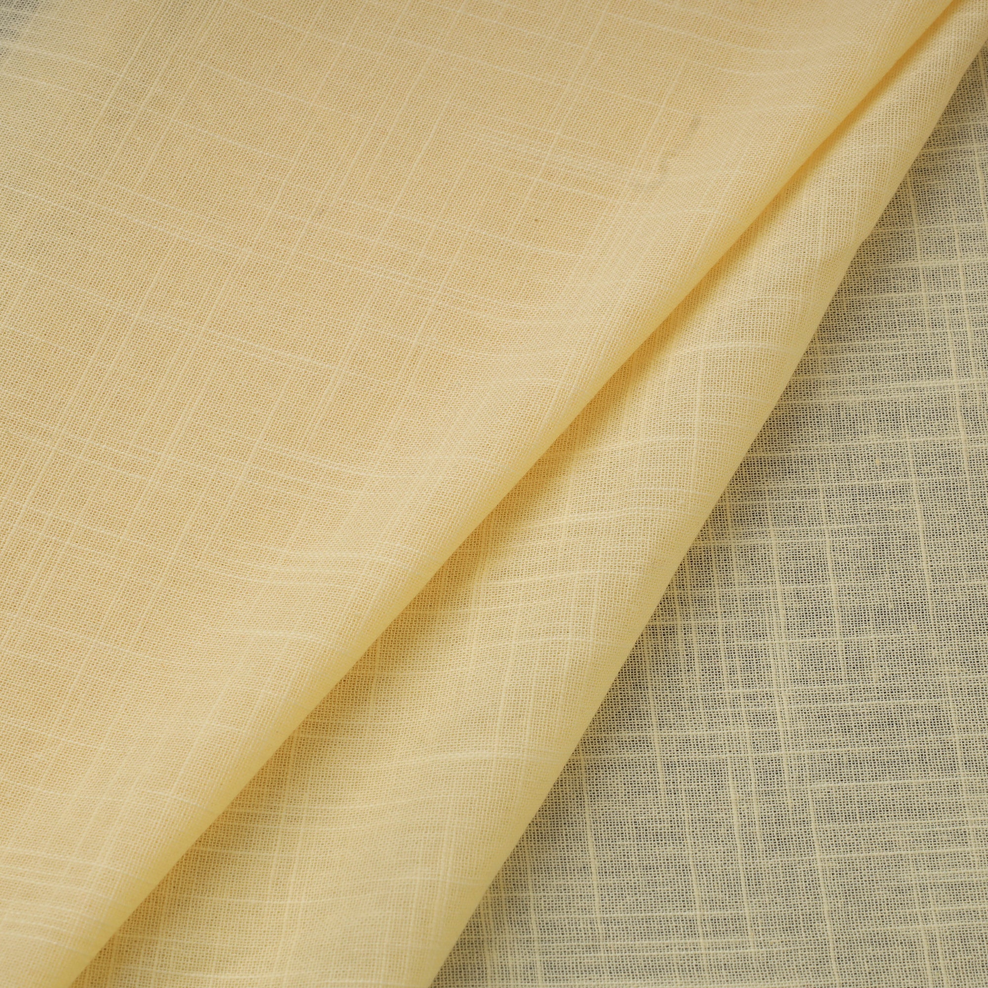 This yellow prewashed slub cotton plain fabric from Jaipur, Rajasthan. Slub cotton has a slightly uneven texture with thicker and thinner threads, giving it a unique look and feel. It's ideal for stitching your favourite kurtas, suits, or for making simple home decor items like cushion covers and curtains. This is a machine made fabric, no handmade process has been involved.