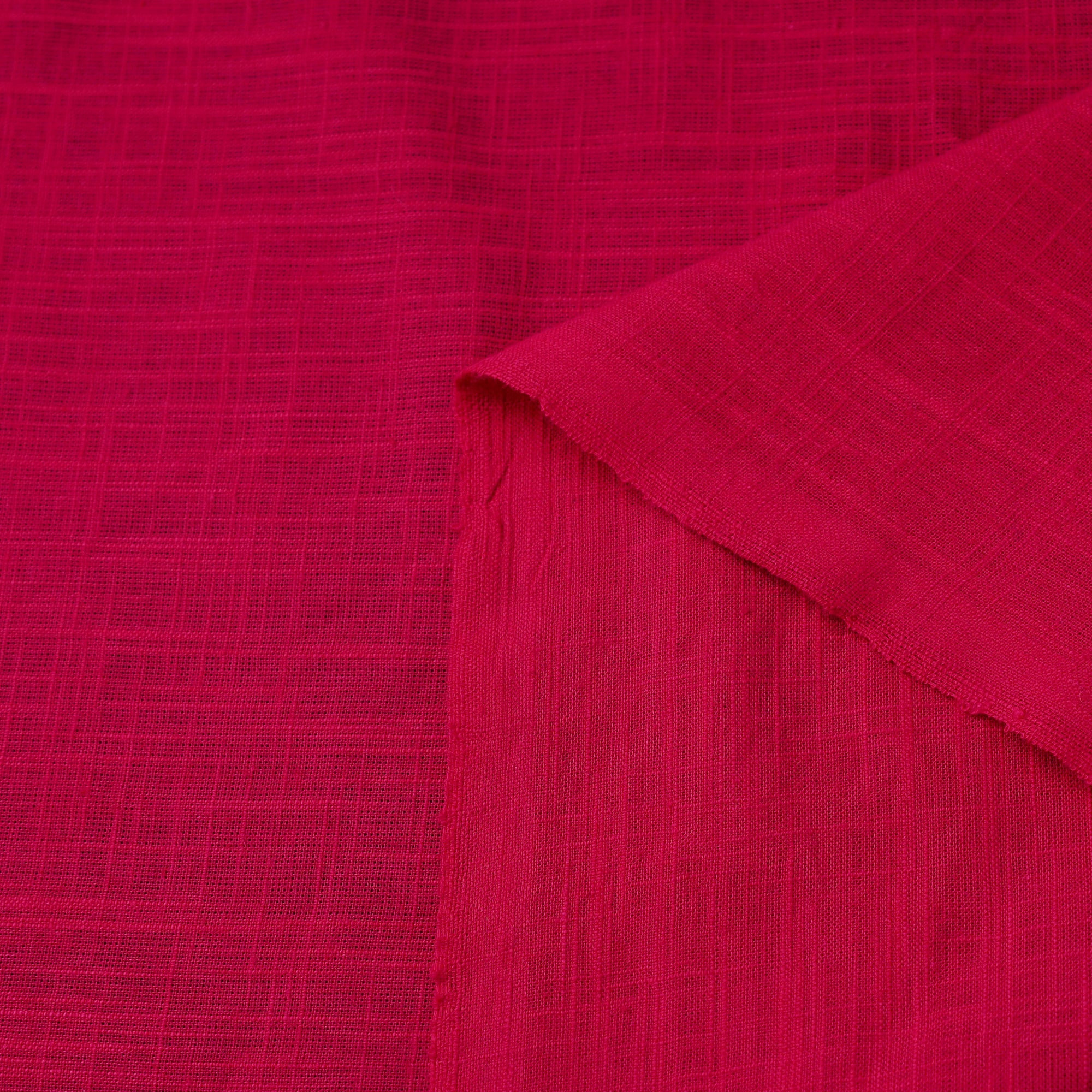 This pink prewashed slub cotton fabric offers both comfort and long-lasting use. With its naturally uneven texture created by thicker and thinner threads, slub cotton adds a distinct charm. Perfect for designing everyday kurtas, suits, or adding a soft accent to your home with cushion covers and curtains.