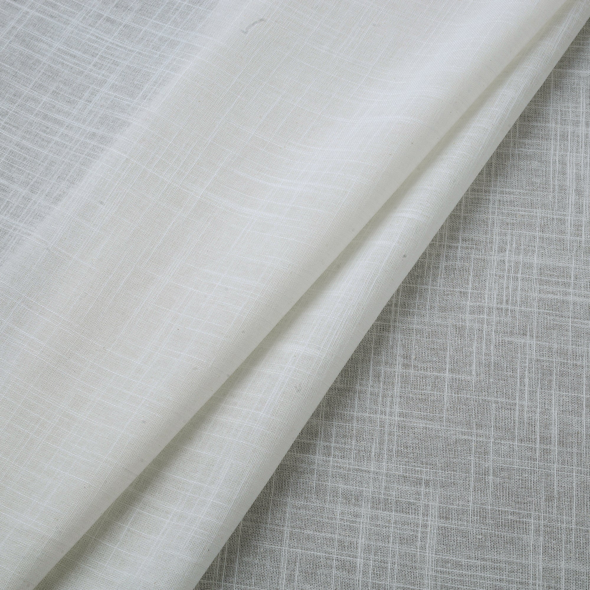 White prewashed slub cotton plain fabric from Jaipur, Rajasthan. Slub cotton has a slightly uneven texture with thicker and thinner threads giving it a unique look. This is a machine made fabric no handmade process has been involved. Ideal for stitching kurtas, suits or for making simple home decor items.