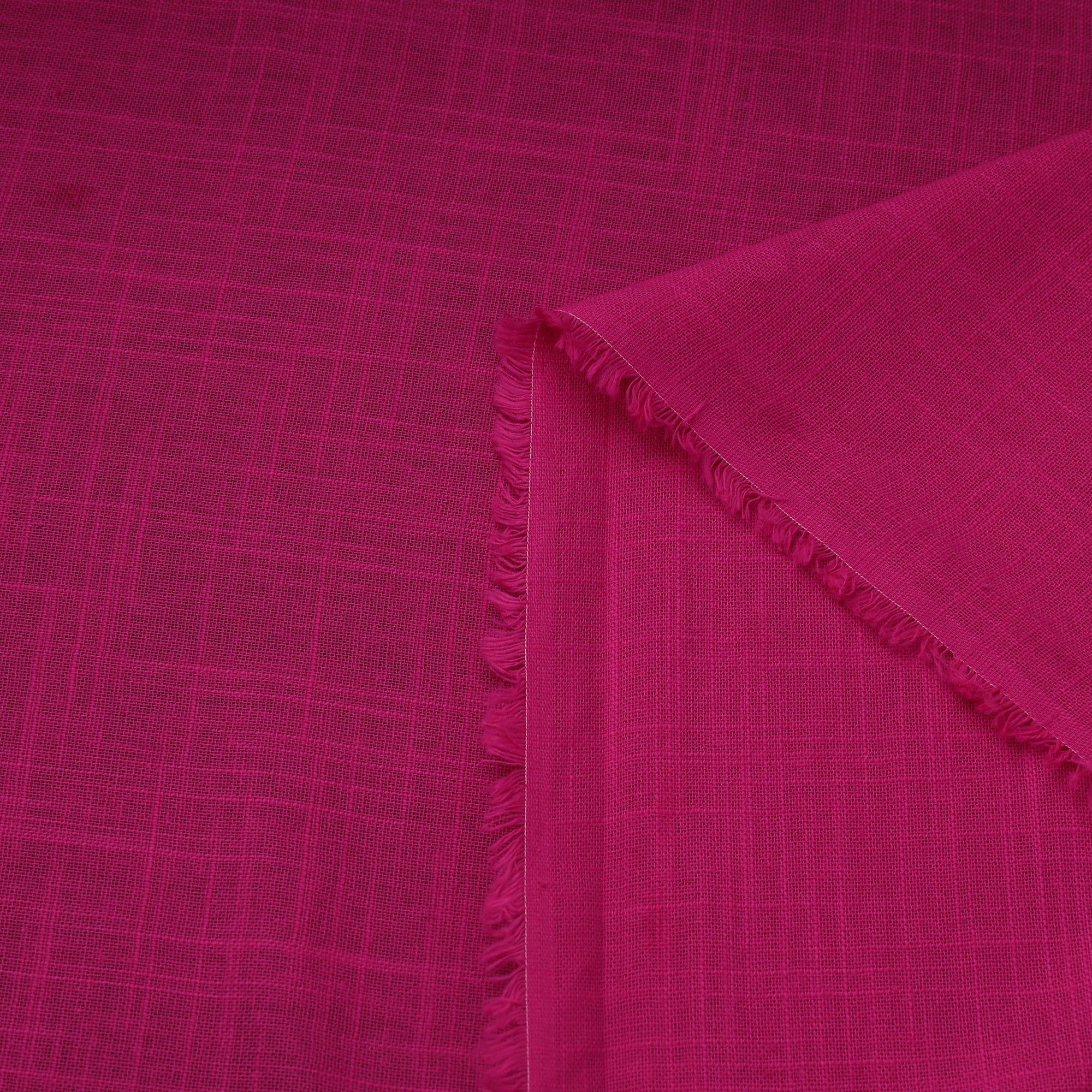 This pink prewashed slub cotton plain fabric from Jaipur, Rajasthan. Slub cotton has a slightly uneven texture with thicker and thinner threads, giving it a unique look and feel. It's ideal for stitching your favourite kurtas, suits, or for making simple home decor items like cushion covers and curtains. This is a machine made fabric, no handmade process has been involved.