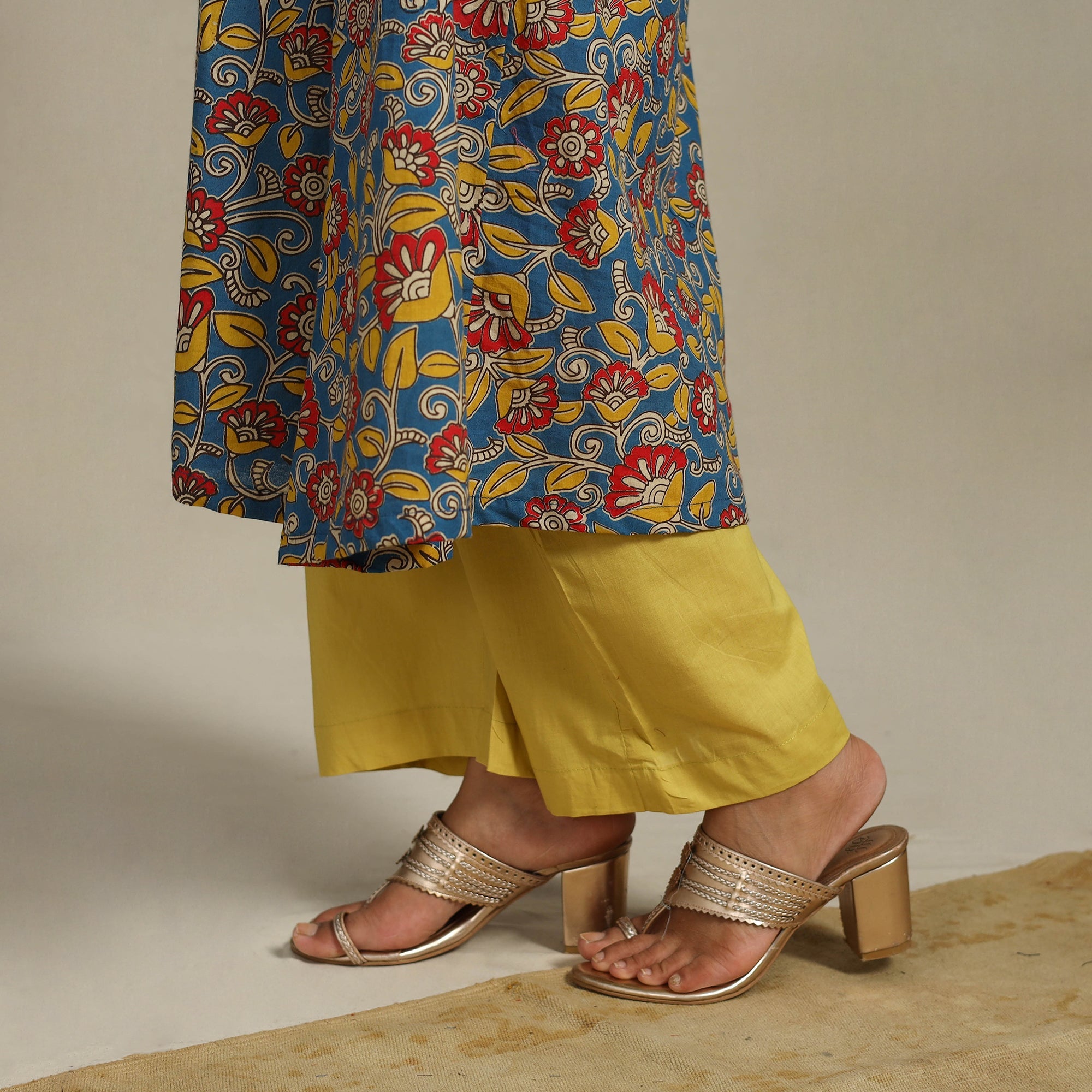 Stay comfortable all day in this blue screen-printed A-line cotton kurta featuring kalamkari-inspired motifs and delicate hand embroidery. Crafted from breathable fabric, the lightweight material feels gentle on the skin while offering both style and ease of movement. Designed with a practical side pocket, it’s perfect for festive gatherings, casual outings, or everyday workwear.
