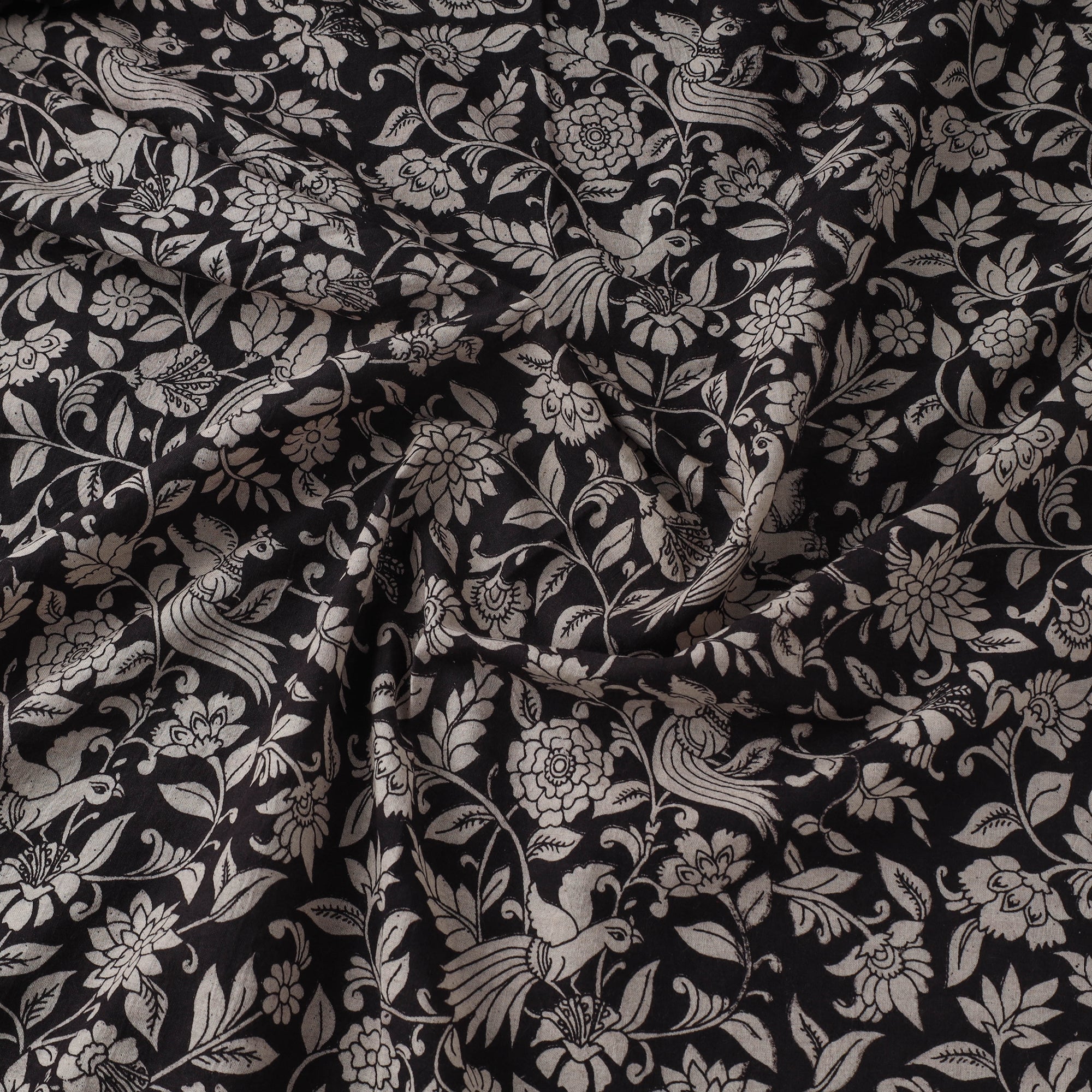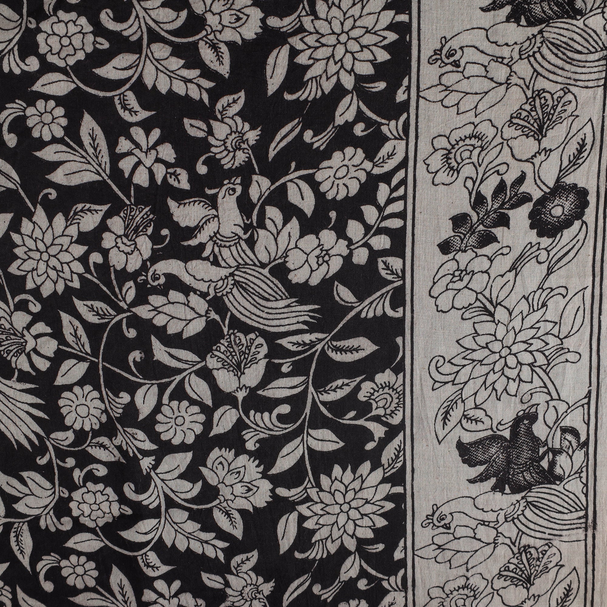 Black - Printed Cotton Kalamkari Fabric 02