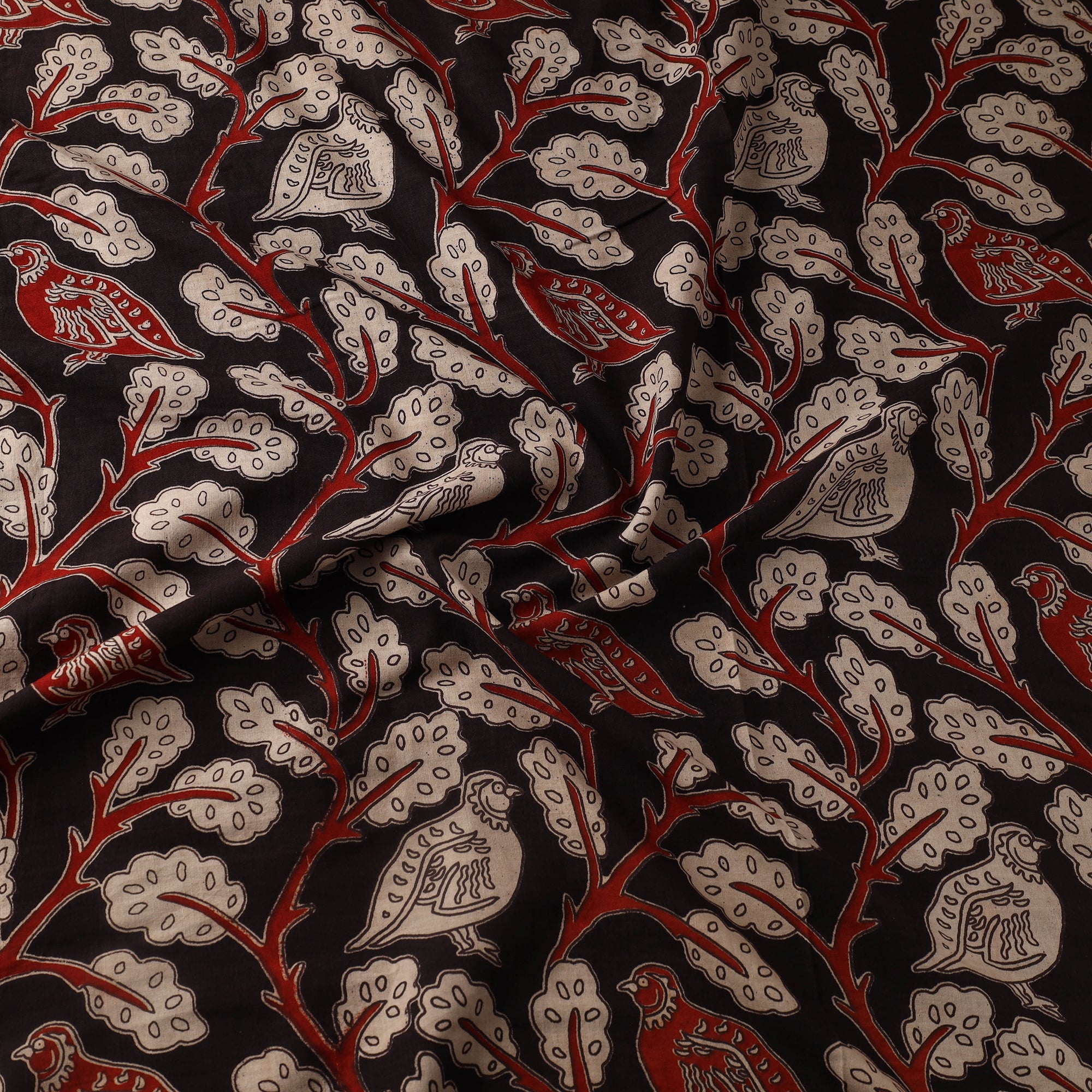 This black cotton fabric celebrates the charm of kalamkari art, known for its intricate and narrative motifs. Featuring detailed screen-printed patterns inspired by florals, vines, mudras, figures, and elephants, each element brings distinct character to the fabric. Crafted by skilled artisans from Andhra Pradesh, it’s ideal for creating unique garments, standout home décor, or anything that deserves a touch of cultural elegance.