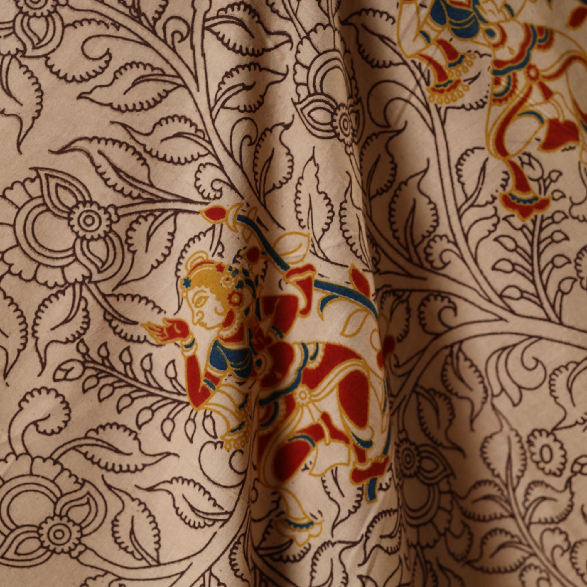 • Beige - Printed Cotton Kalamkari Fabric 02