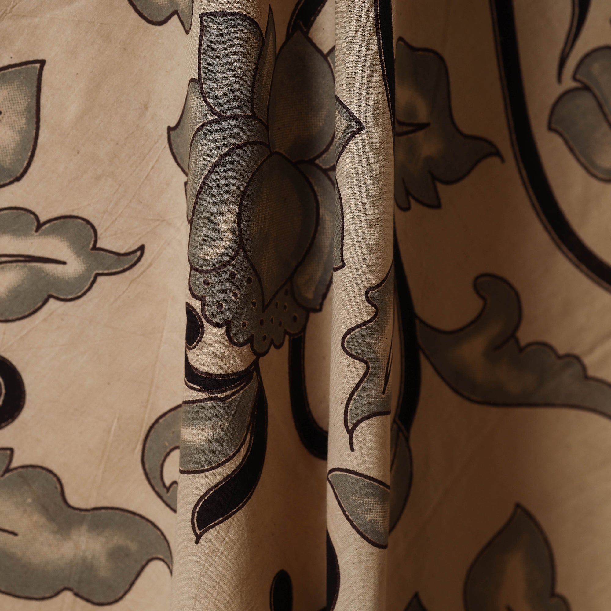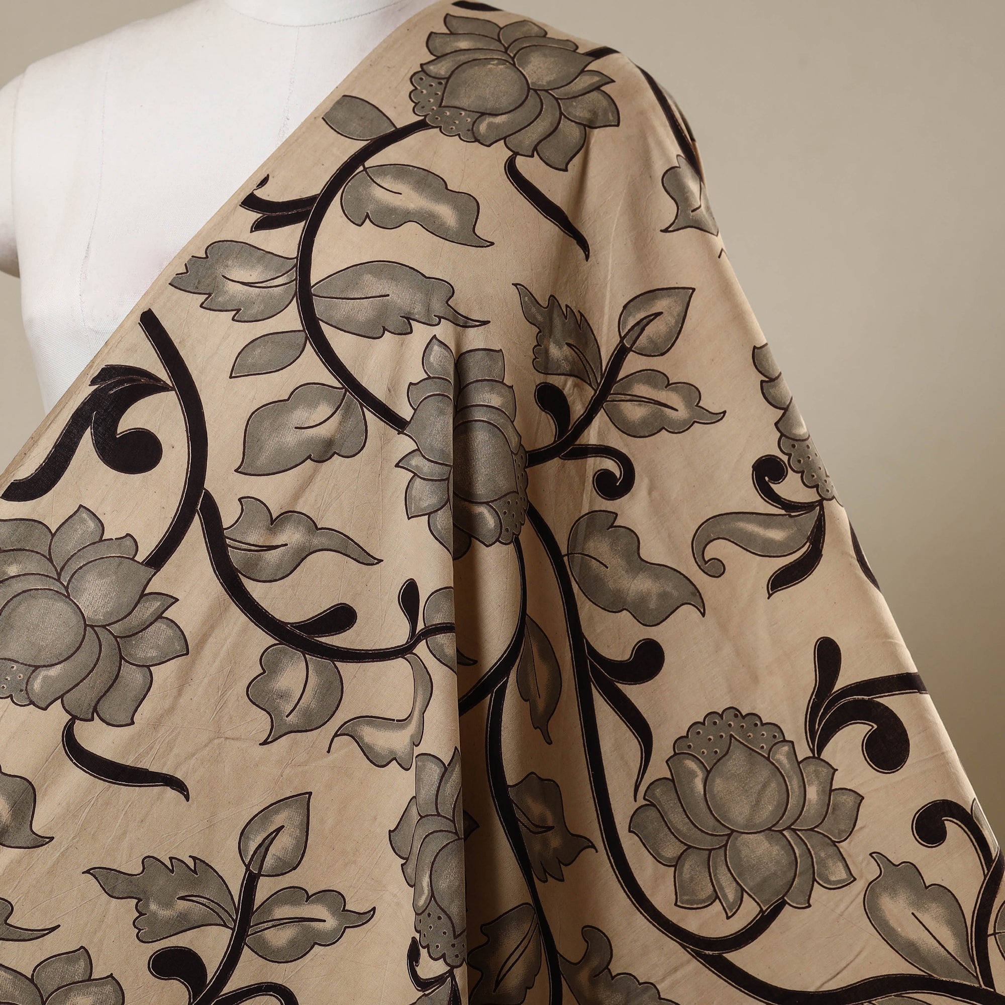 • Beige - printed cotton kalamkari fabric 06 - handcrafted