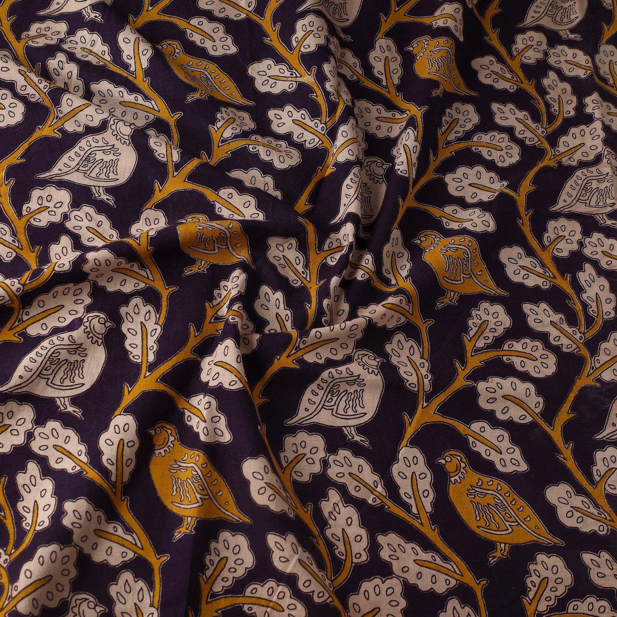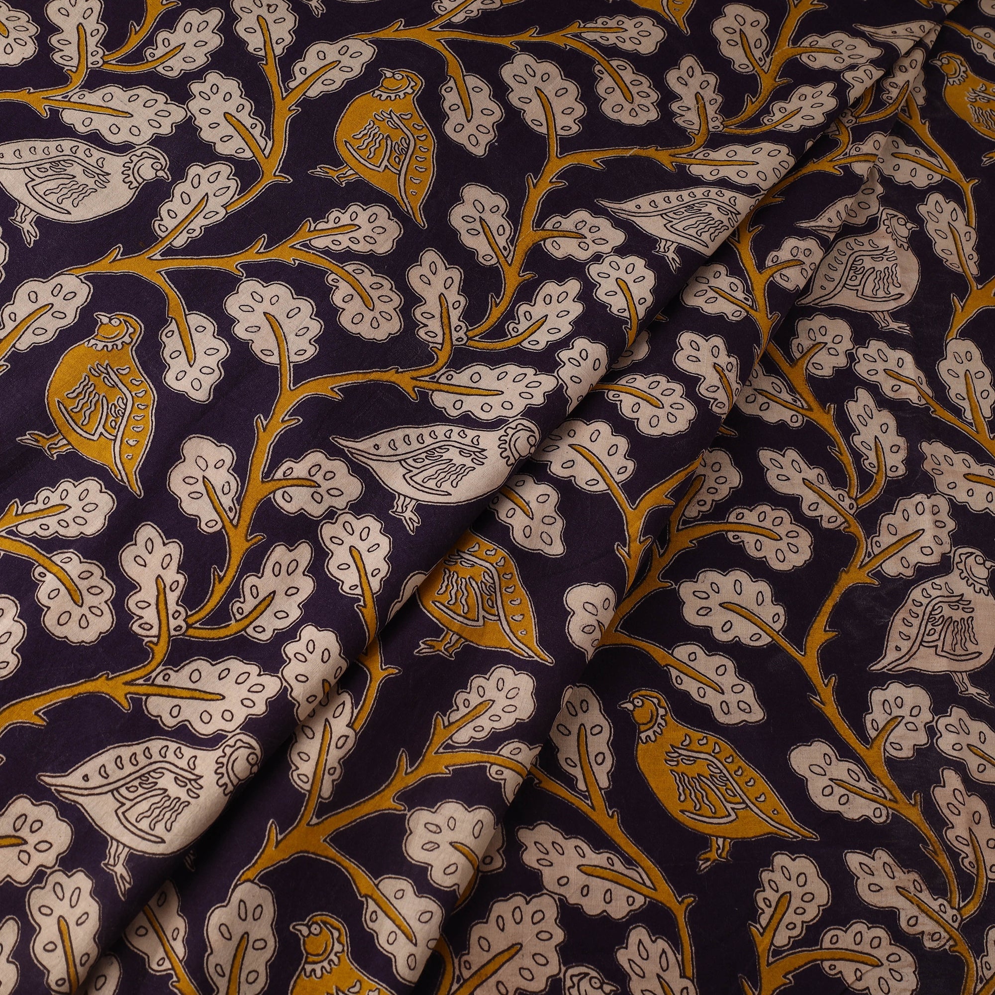 This black cotton fabric celebrates the charm of kalamkari art, known for its intricate and narrative motifs. Featuring detailed screen-printed patterns inspired by florals, vines, mudras, figures, and elephants, each element brings distinct character to the fabric. Crafted by skilled artisans from Andhra Pradesh, it’s ideal for creating unique garments, standout home décor, or anything that deserves a touch of cultural elegance.