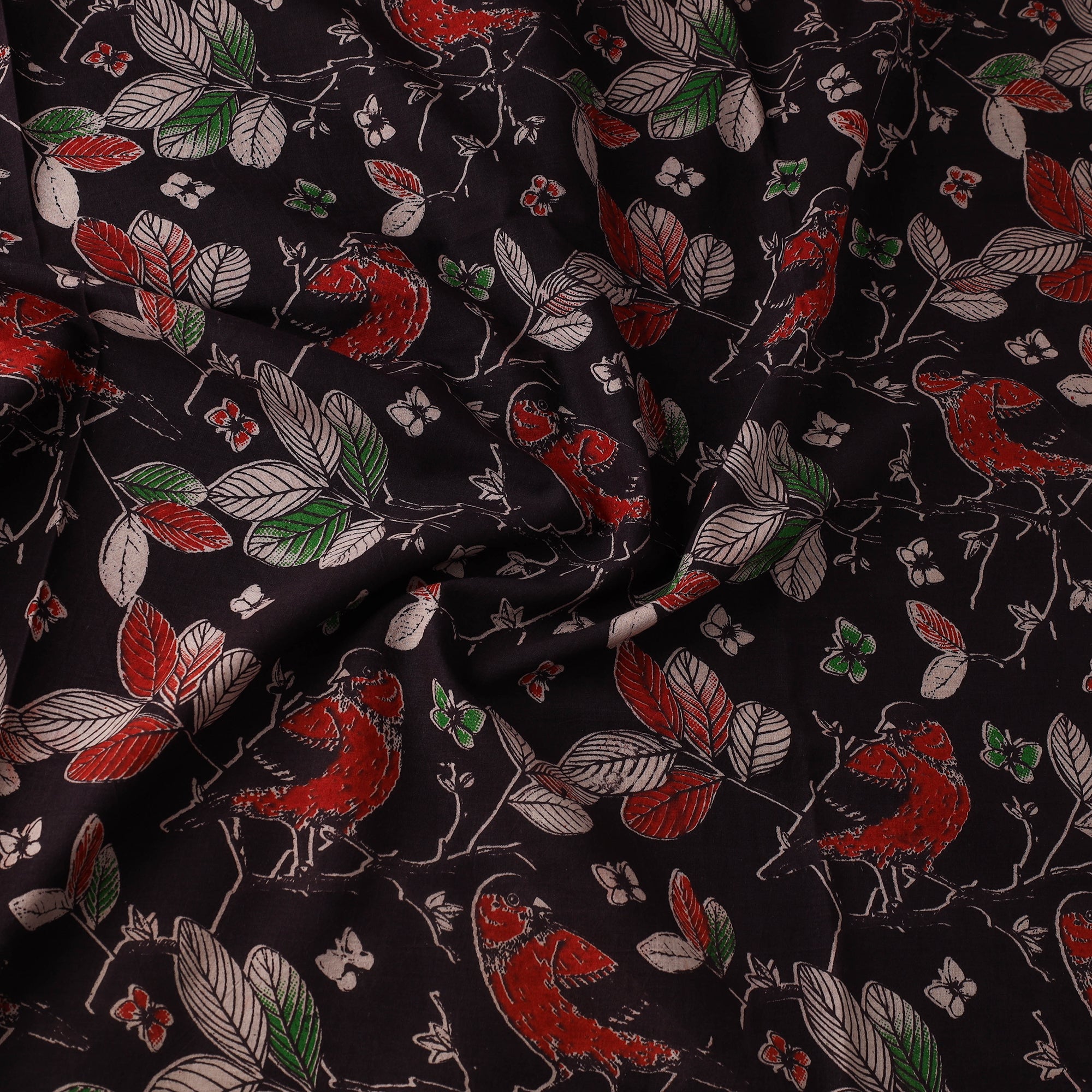 This black cotton fabric celebrates the charm of kalamkari art, known for its intricate and narrative motifs. Featuring detailed screen-printed patterns inspired by florals, vines, mudras, figures, and elephants, each element brings distinct character to the fabric. Crafted by skilled artisans from Andhra Pradesh, it’s ideal for creating unique garments, standout home décor, or anything that deserves a touch of cultural elegance.