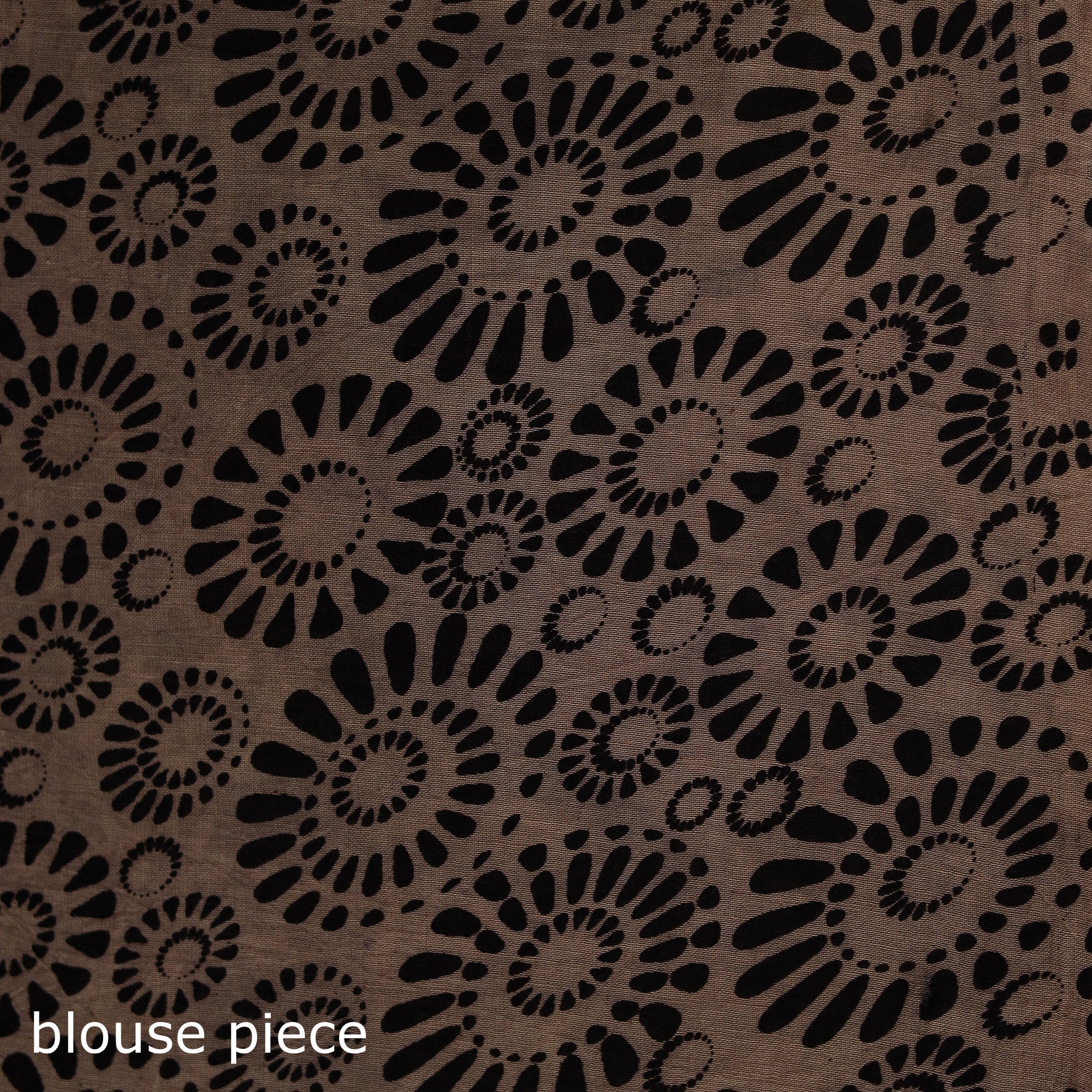This black pure cotton saree celebrates the beauty of kalamkari art, admired for its intricate and storytelling motifs. Featuring screen-printed patterns inspired by florals, vines, figures and elephants, it exudes a subtle elegance that makes it truly special. Crafted by skilled artisans this saree beautifully blends tradition with modern grace, making it perfect for festive gatherings or casual outings.