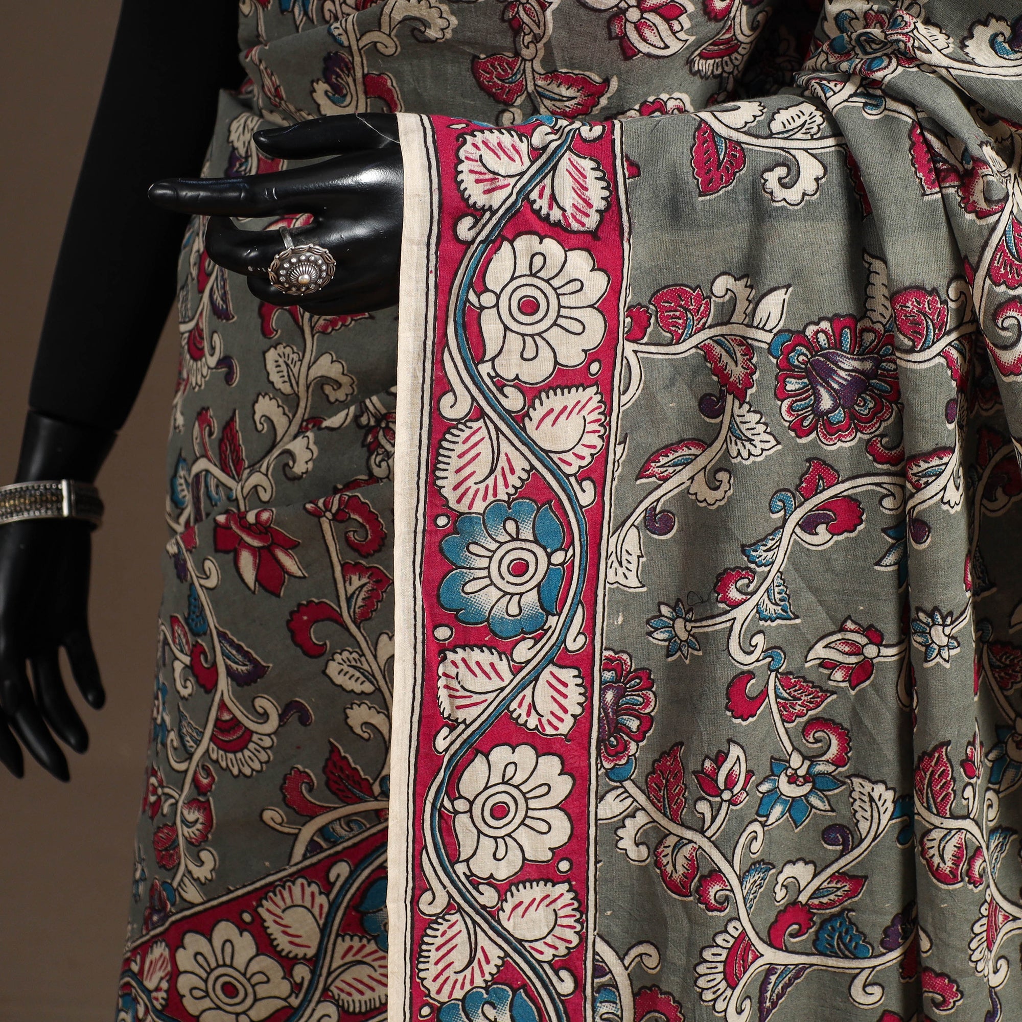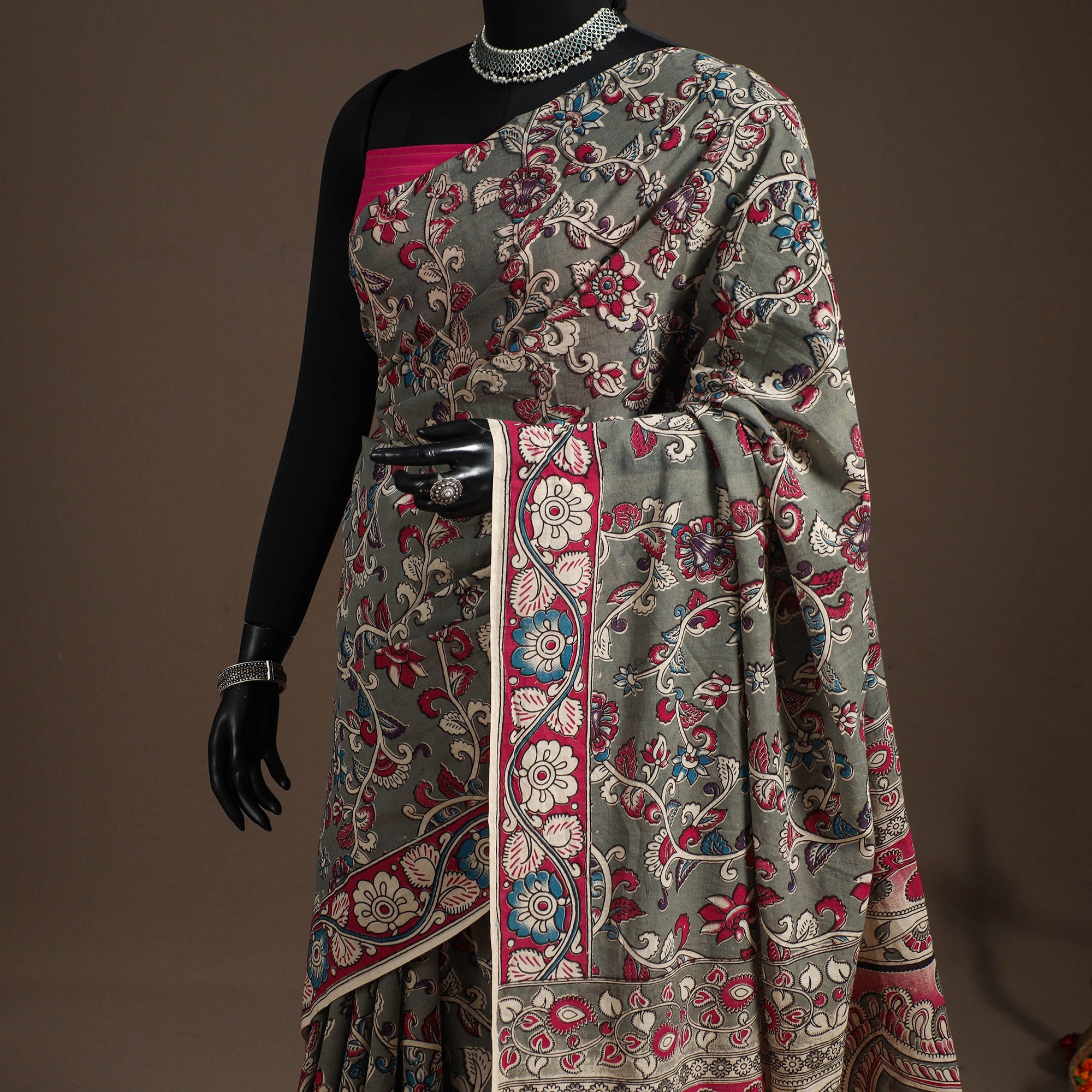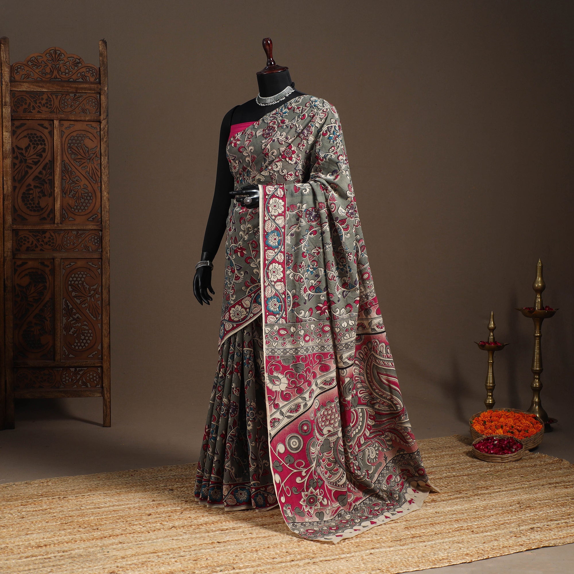 This kalamkari cotton saree with jacquard blouse piece beautifully blends comfort with cultural charm. Adorned with screen-printed motifs inspired by Indian traditions, it is perfect for festive gatherings or casual outings. The lightweight, breathable fabric makes it easy to drape and carry through the day.