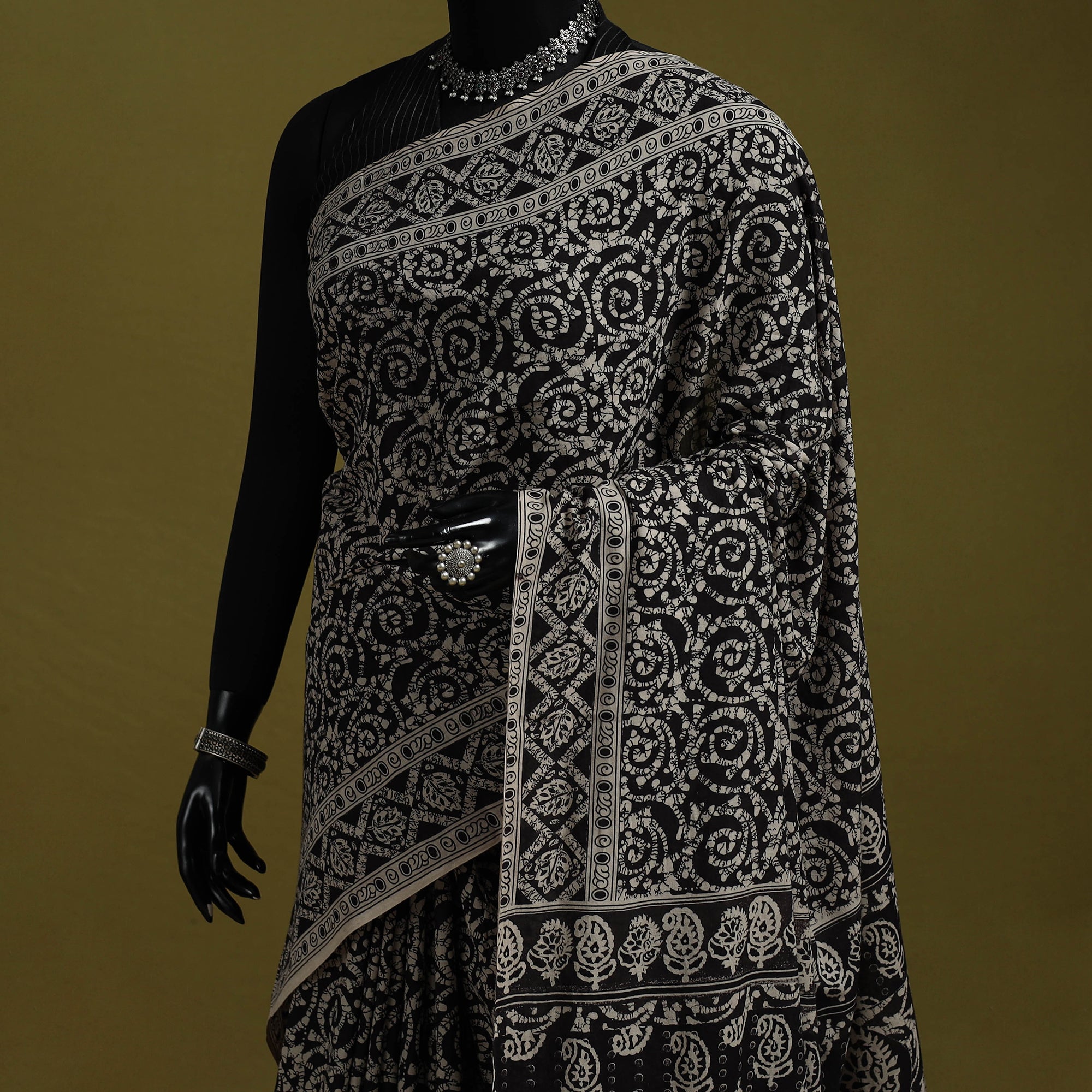 Pure cotton kalamkari saree from Nellore, Andhra Pradesh. Adorned with intricate storytelling motifs, it features detailed screen printed patterns inspired by florals, vines, figures and elephants, highlighting the cultural depth and narrative style of Kalamkari art perfect for cultural gatherings, festive occasions, office wear and graceful everyday outings.
