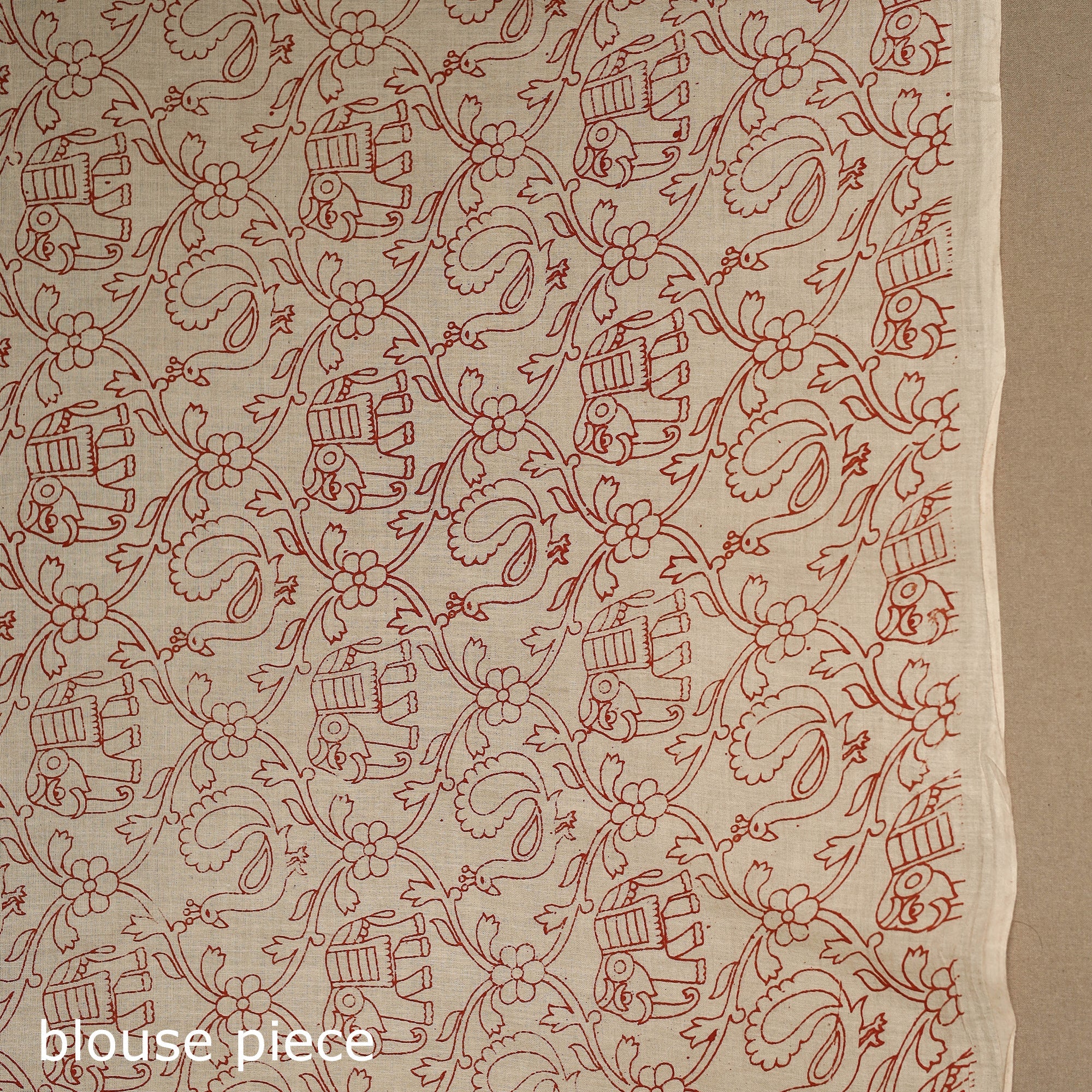 This yellow cotton kalamkari saree celebrates the charm of Nellore’s artistic traditions in Andhra Pradesh. Featuring intricate storytelling motifs, it showcases beautifully block-printed patterns inspired by florals, vines, figures, and elephants. Each detail adds a distinctive character, reflecting the cultural depth of Kalamkari art. Perfect for occasions where tradition meets elegance.