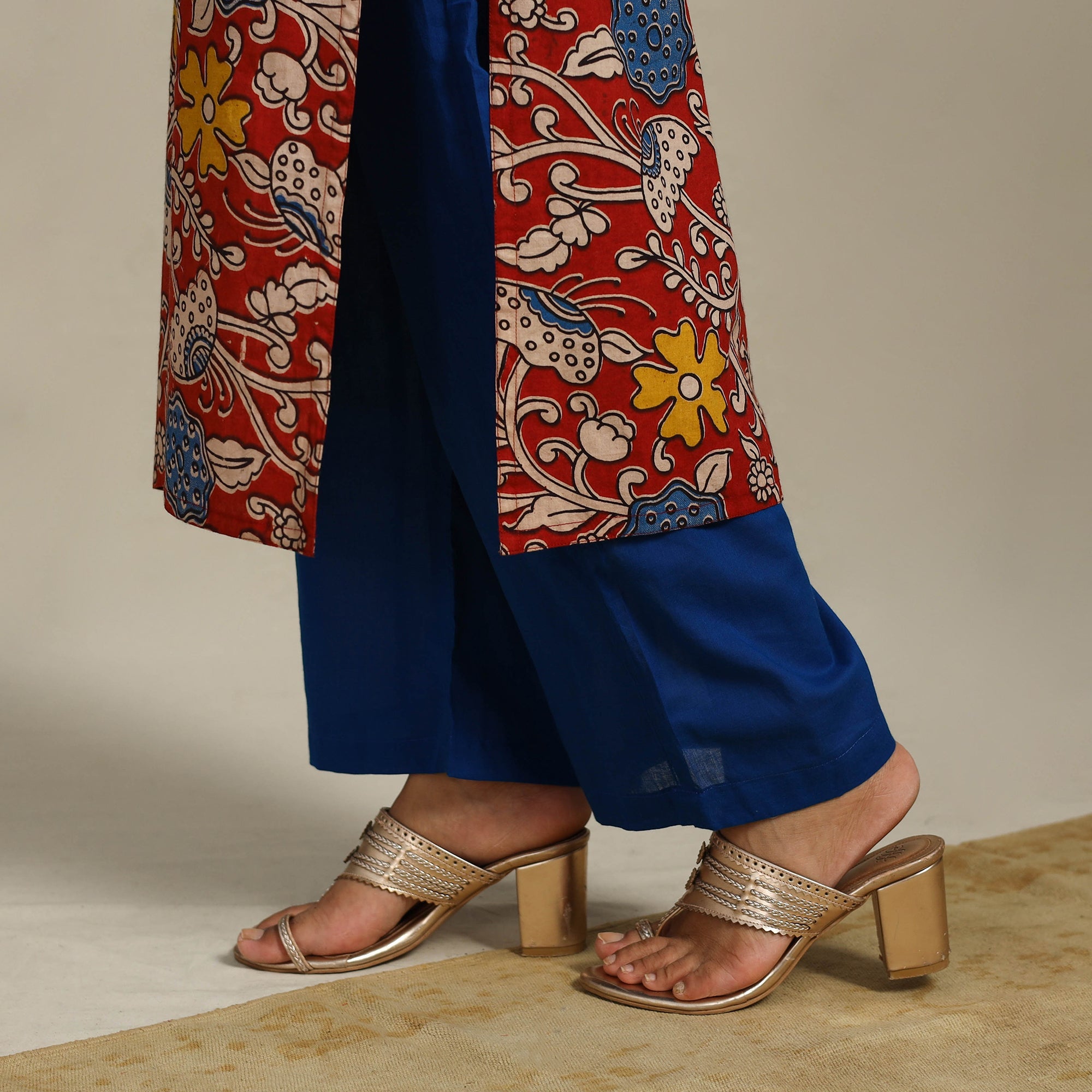 Stay comfortable all day in this red straight cotton kurta, featuring kalamkari-inspired screen print and delicate hand embroidery. Crafted from breathable cotton, the lightweight fabric feels gentle on the skin while offering style and ease of movement. Designed with a practical side pocket, it’s ideal for festive gatherings, casual outings, or everyday workwear.