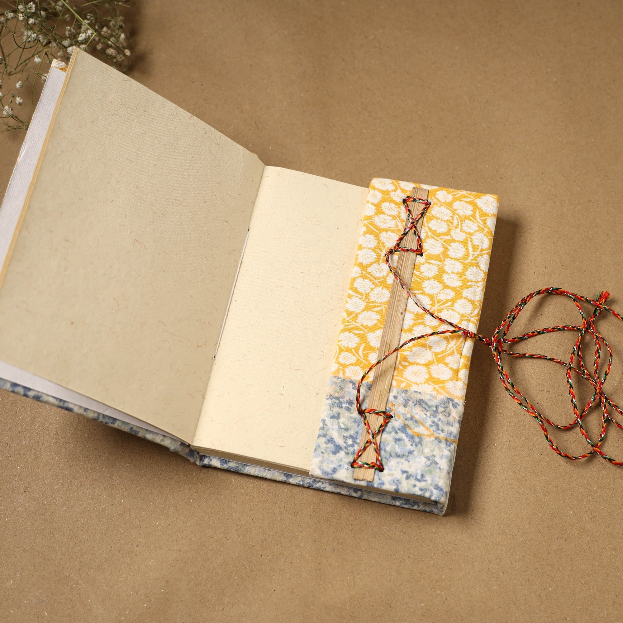 | Material | Yellow printed fabric-embellished, hardbound cover notebook with a thread-lock closure and handmade papers. The paper is made from cotton and other natural fibre waste, recycled in an eco-friendly process without the use of chemicals. Crafted by skilled artisans who give careful personal attention to every detail. A creative and practical choice for journaling, planning or capturing daily thoughts. |