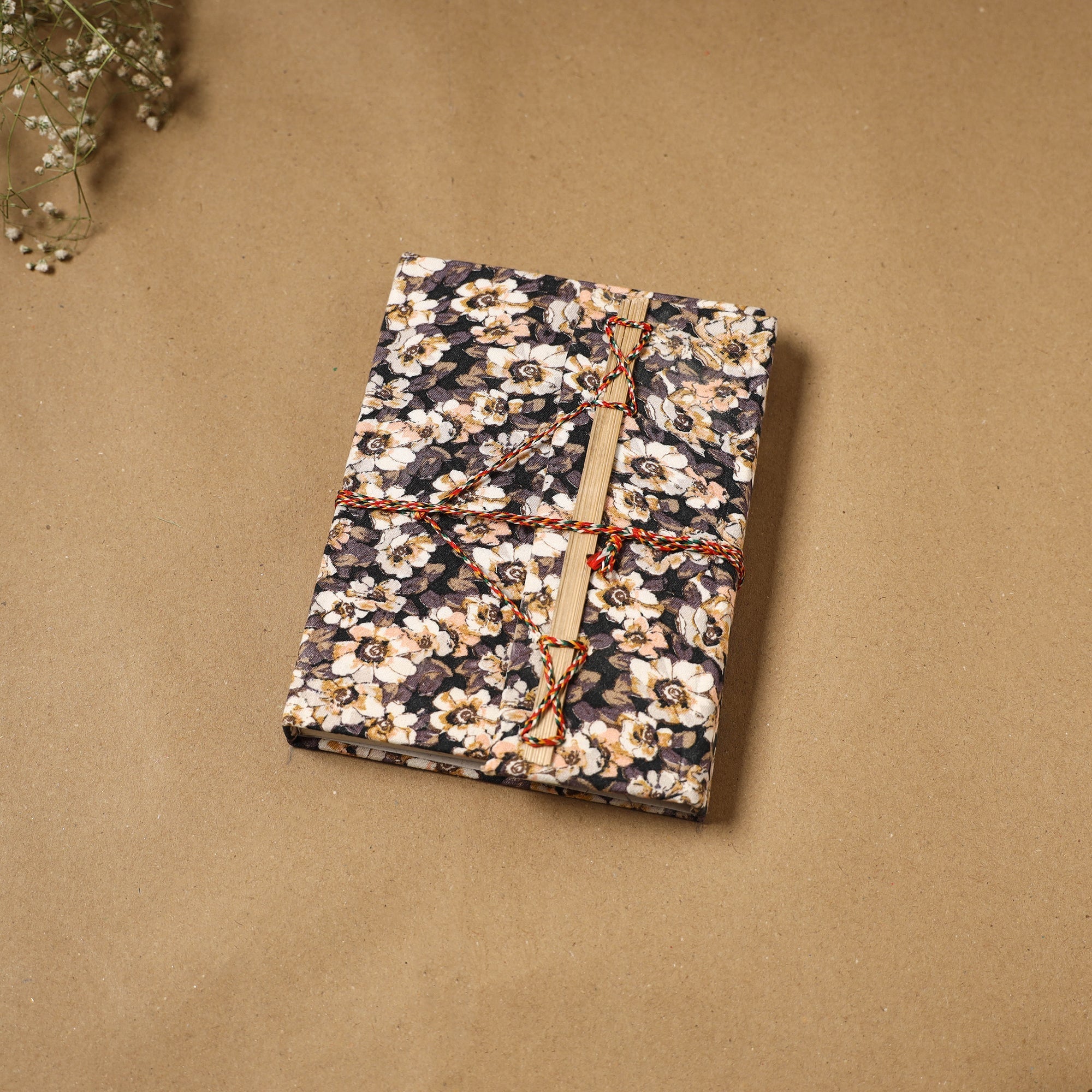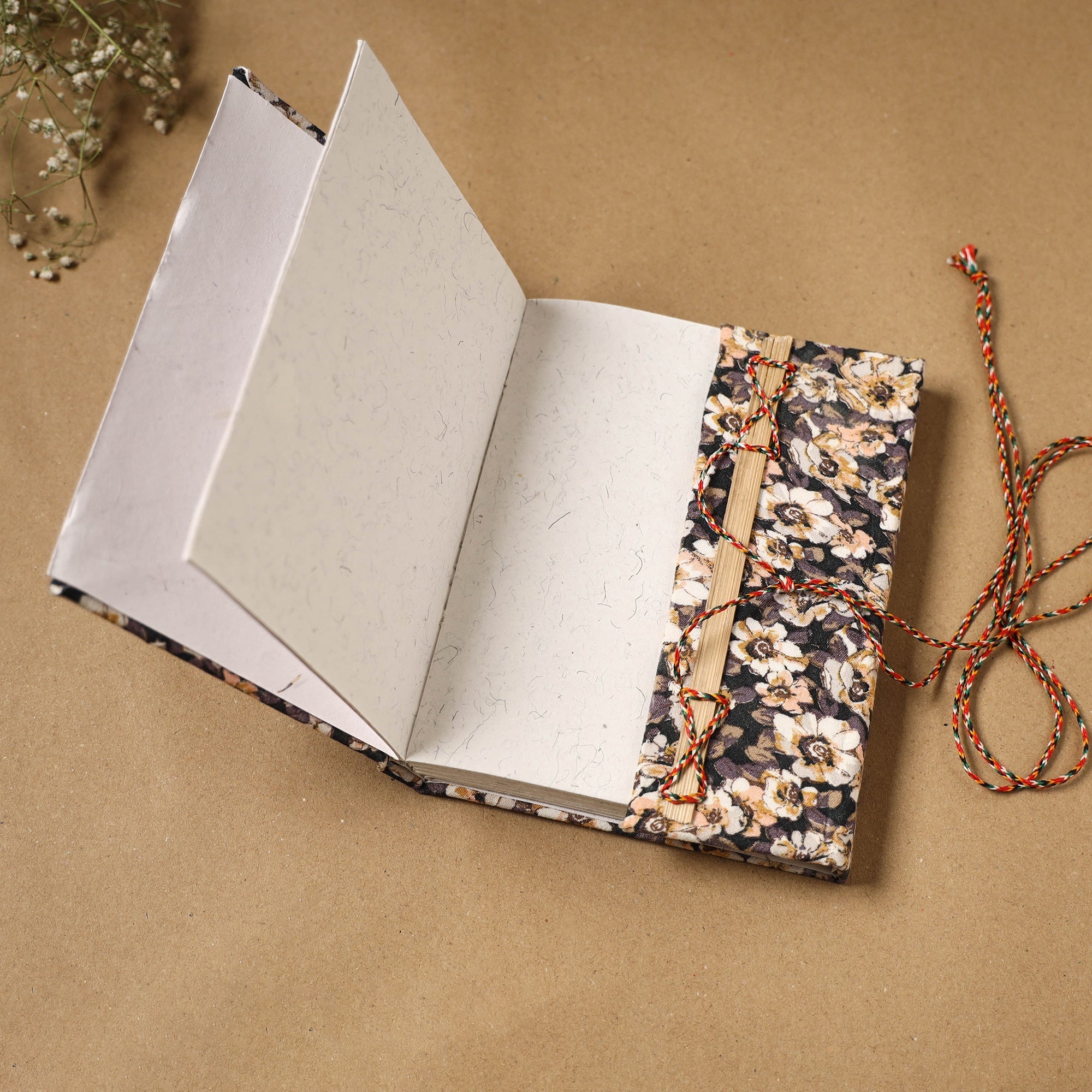 | Material | Black printed fabric-embellished, hardbound cover notebook with a thread-lock closure and handmade papers. The paper is made from cotton and other natural fibre waste, recycled in an eco-friendly process without the use of chemicals. Crafted by skilled artisans who give careful personal attention to every detail. A creative and practical choice for journaling, planning or capturing daily thoughts. |